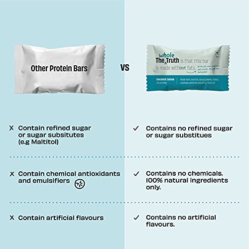 The Whole Truth - Protein Bars - Coconut Cocoa | Pack of 6 x 52g each | No Added Sugar | No Added Preservatives | No Gluten or Soy | No Artificial Sweeteners | All Natural