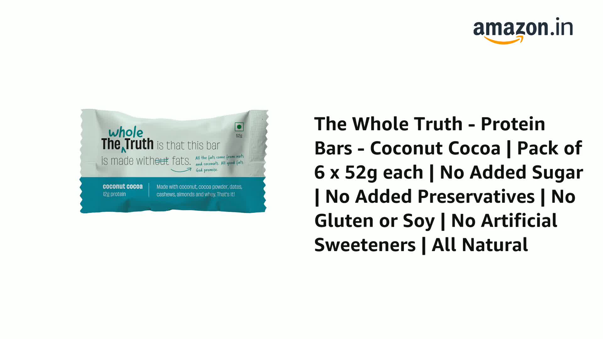 HomeGroceryHealthy BreakfastHealth BarThe Whole Truth - Protein Bars - Coconut Cocoa | Pack of 6 x 52g each | No Added Sugar | No Added Preservatives | No Gluten or Soy | No Artificial Sweeteners | All Natural