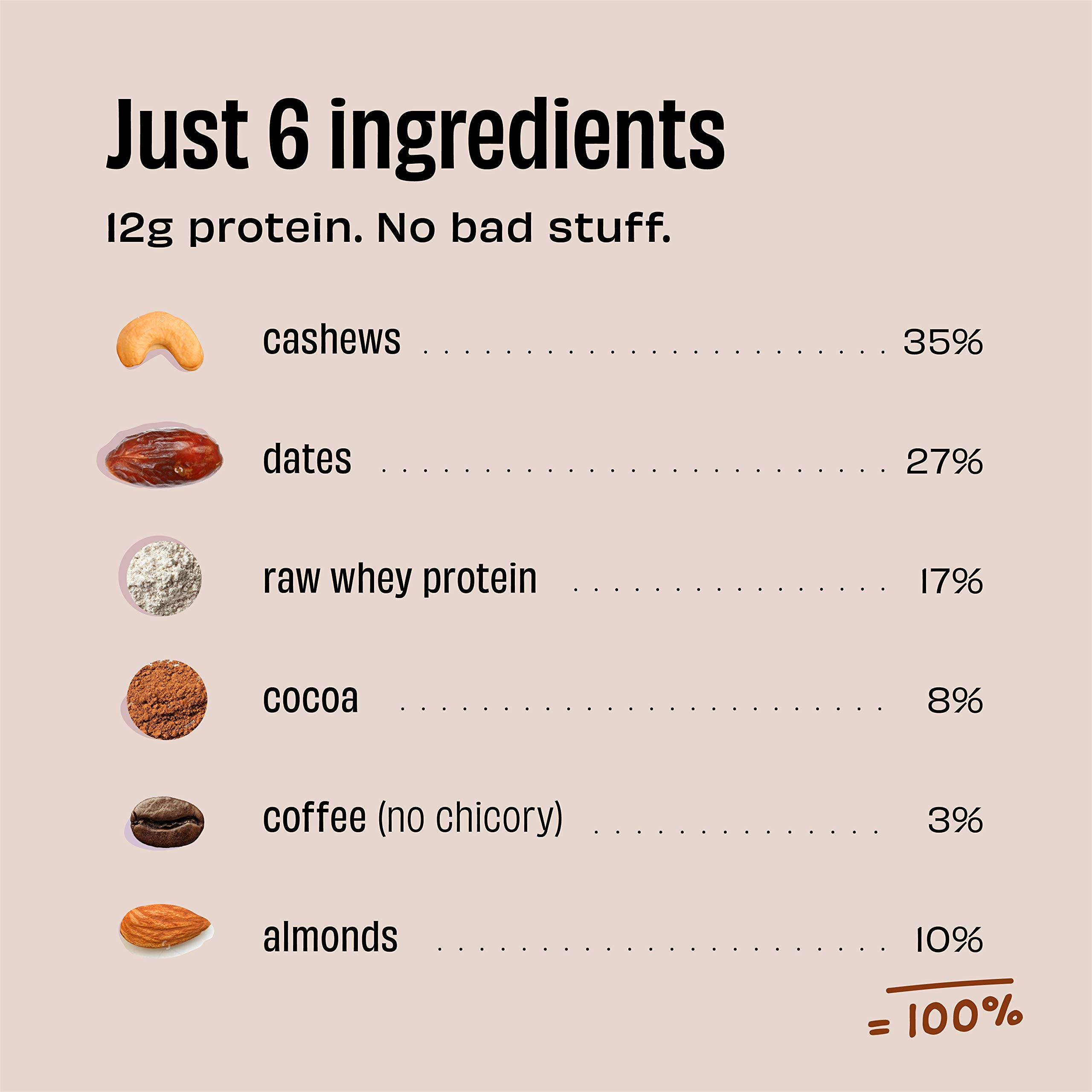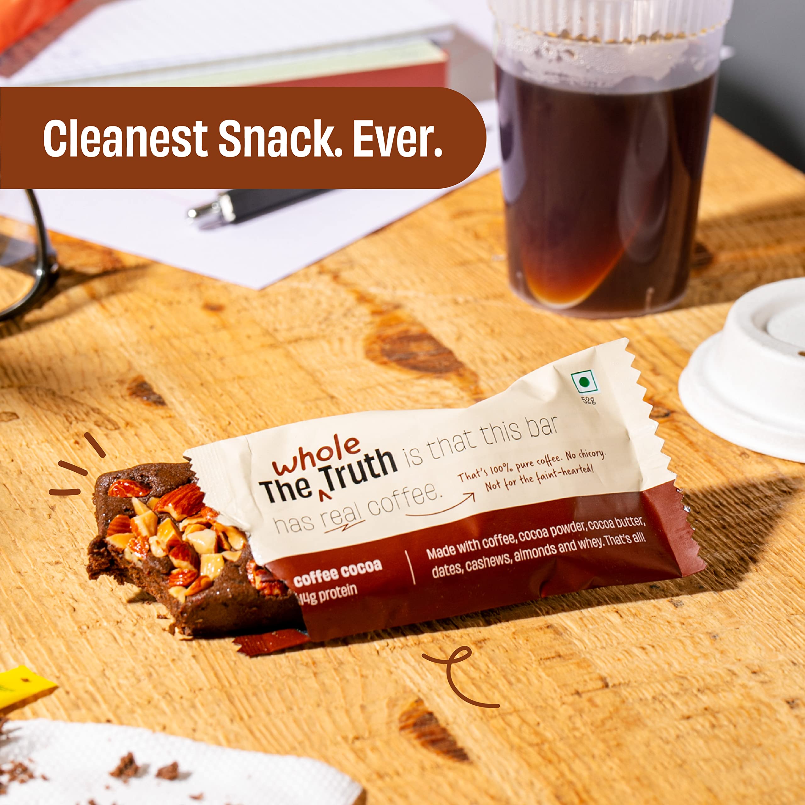 The Whole Truth - Protein Bars | Coffee Cocoa | Pack of 6 x 52g each | No Added Sugar | No Preservatives | No Artificial Sweeteners | No Gluten or Soy | All Natural Ingredients