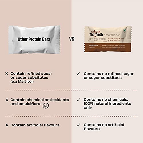 The Whole Truth - Protein Bars | Coffee Cocoa | Pack of 6 x 52g each | No Added Sugar | No Preservatives | No Artificial Sweeteners | No Gluten or Soy | All Natural Ingredients