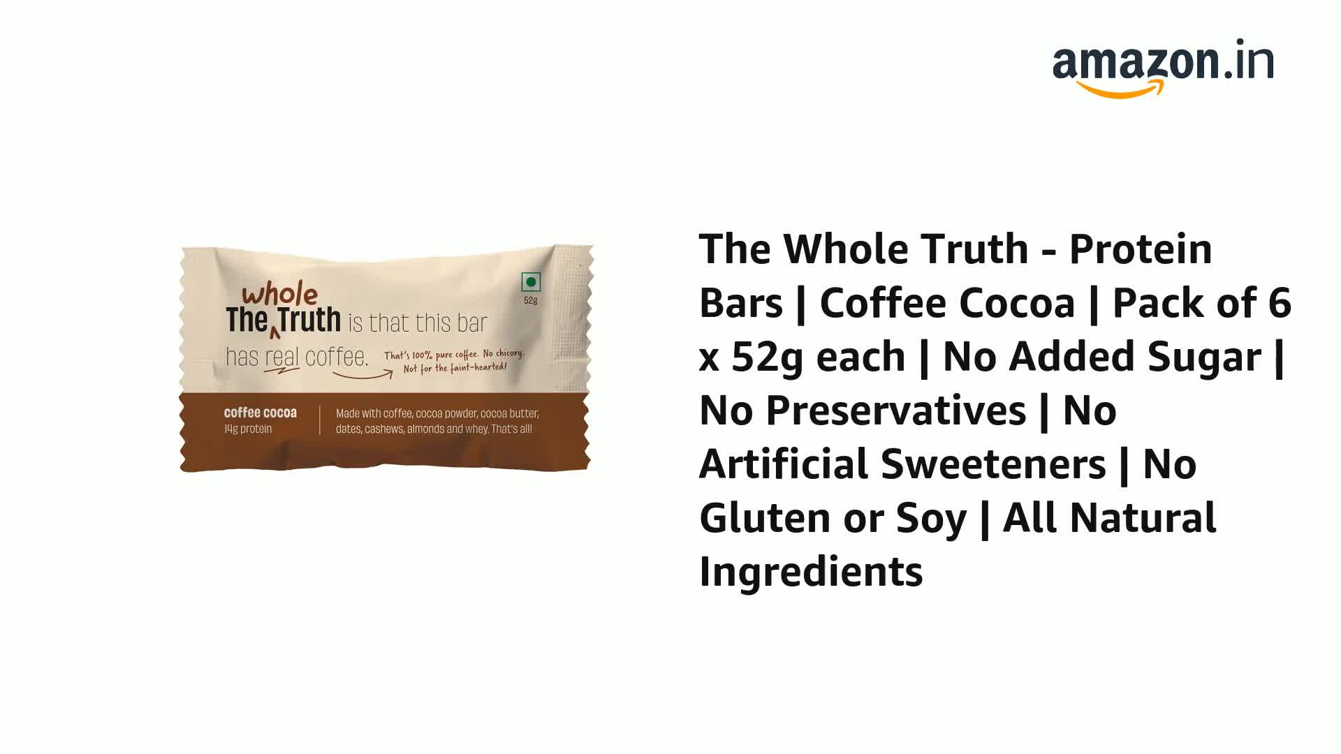 HomeGroceryHealthy BreakfastHealth BarThe Whole Truth - Protein Bars | Coffee Cocoa | Pack of 6 x 52g each | No Added Sugar | No Preservatives | No Artificial Sweeteners | No Gluten or Soy | All Natural Ingredients