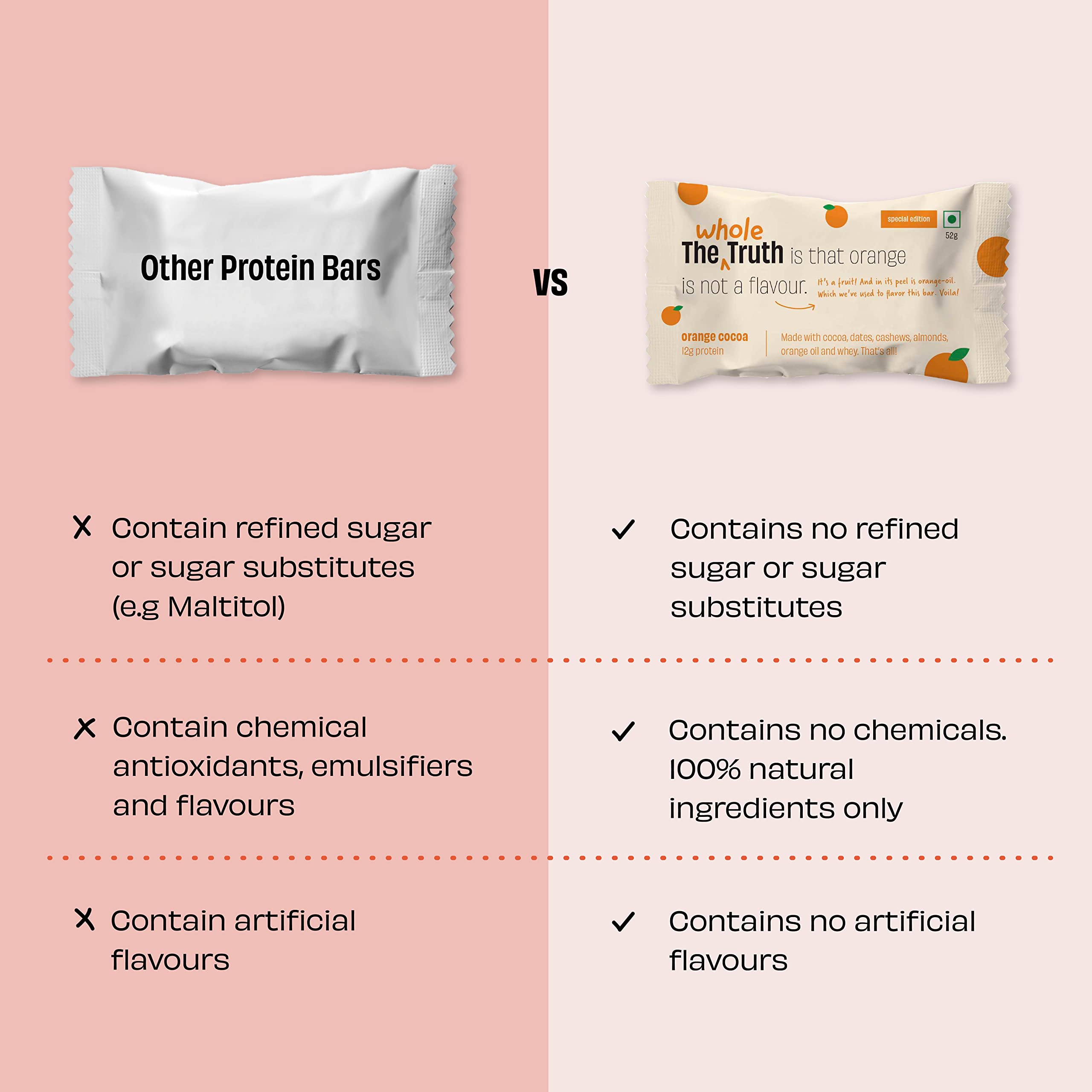 The Whole Truth Protein Bars - Orange Cocoa Pack of 6 (6 x 52g) All Natural No Added Sugar
