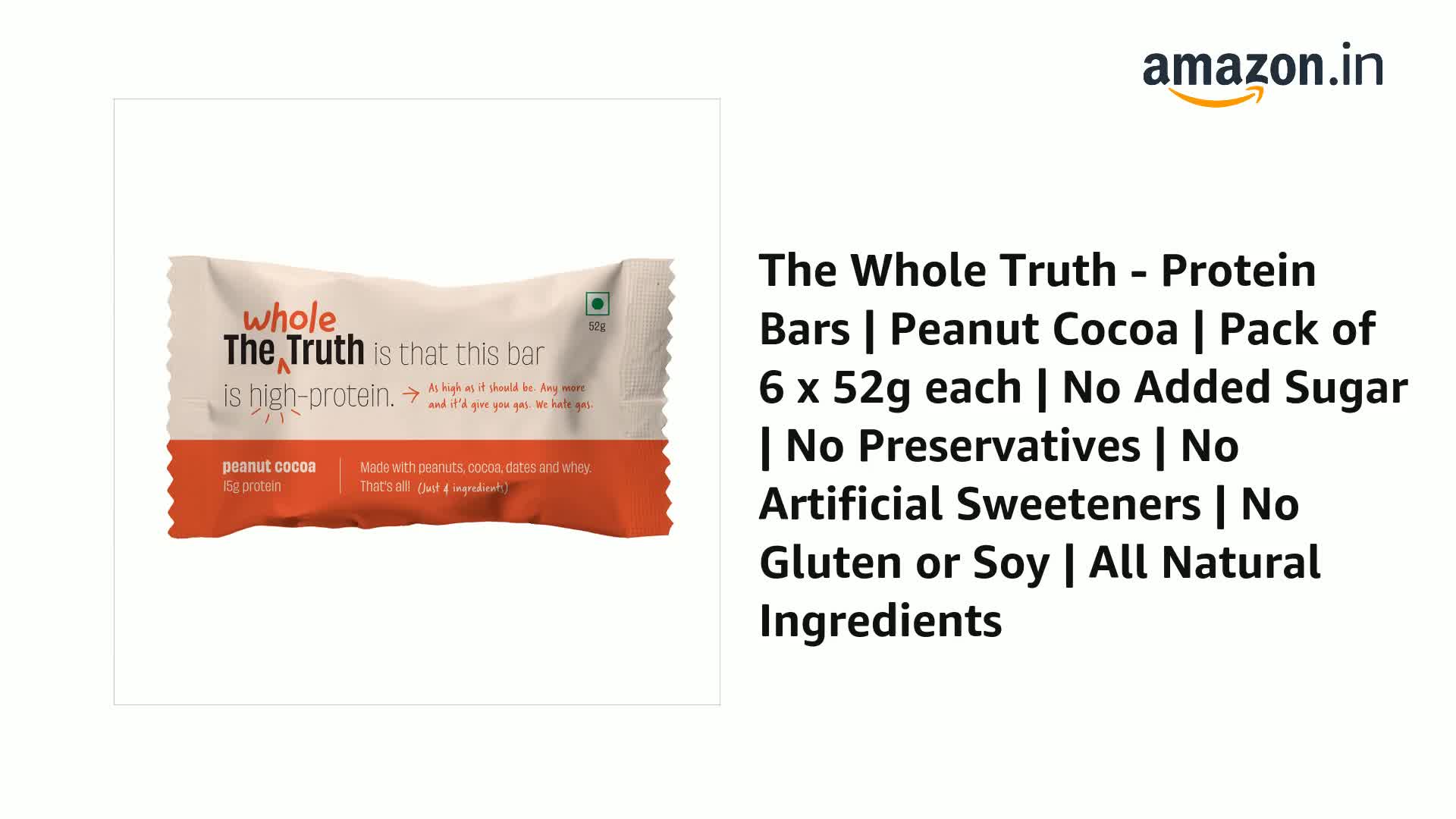 HomeGroceryHealthy BreakfastHealth BarThe Whole Truth - Protein Bars | Peanut Cocoa | Pack of 6 x 52g each | No Added Sugar | No Preservatives | No Artificial Sweeteners | No Gluten or Soy | All Natural Ingredients