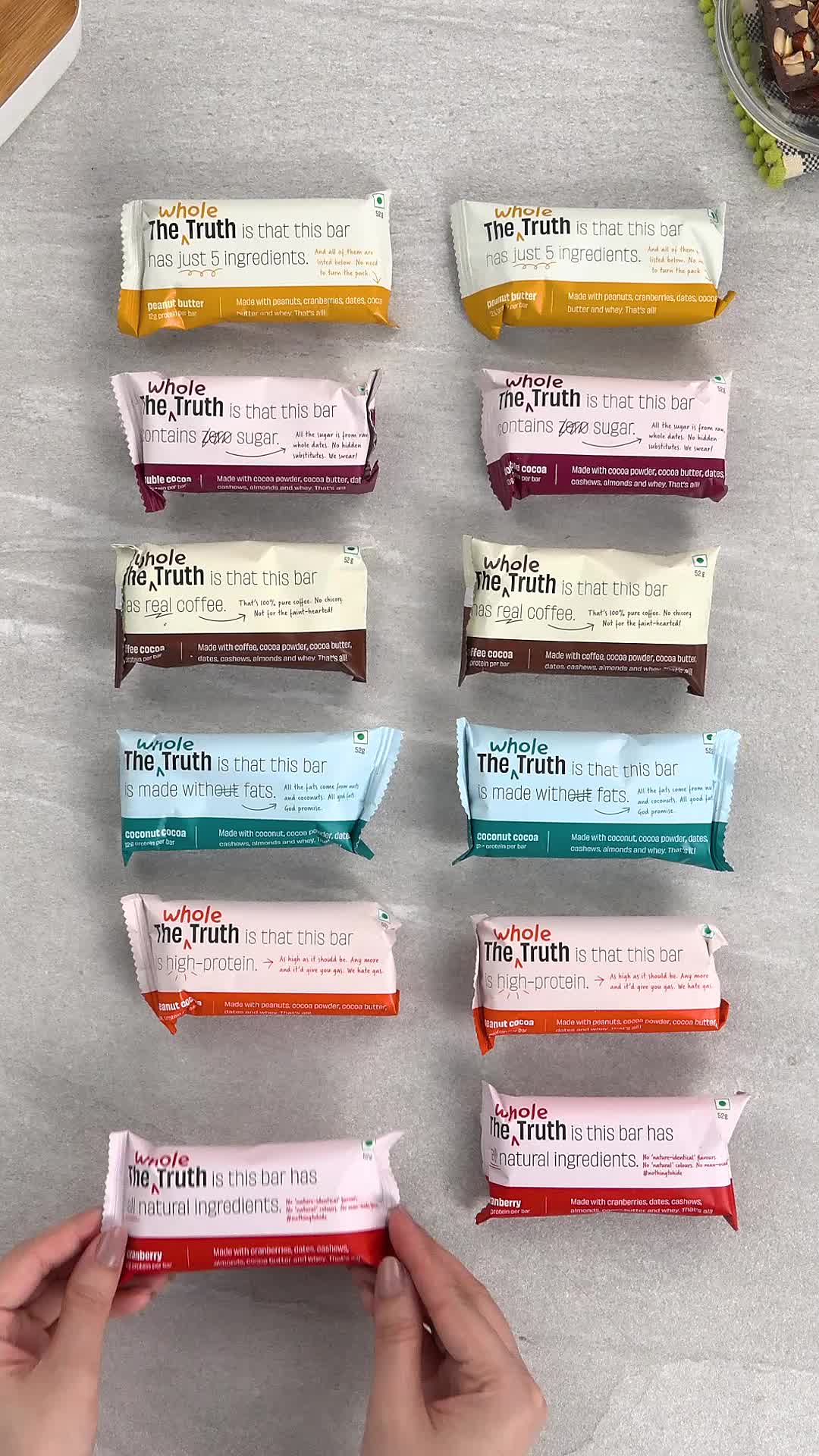 Healthy Meets (very) Tasty. Sometimes all you need is a little bit of everything! If you're new to our part of town we highly recommend you start with this sampler pack. Who knows what all you might end up falling in love with! Just 5/6 Ingredients. All declared upfront. Other brands hide their ingredients at the back because they have something to hide. We declare all our ingredients proudly - upfront! 12g/15g Veg Protein. For Everyone. It's a myth that only gym-going men need protein. Expecting moms growing kids aging dads - they all do! And if they love nuts and dates - they'll love our bars. No bad stuff. Proof: Nothing you can't pronounce. Does your bar have Maltodextrin? Or Maltilol? Or FOS (fructo-oligosaccharides)? Why!? Well! We only make real food. With ingredients you can pronounce. Nothing made in a chemistry lab.