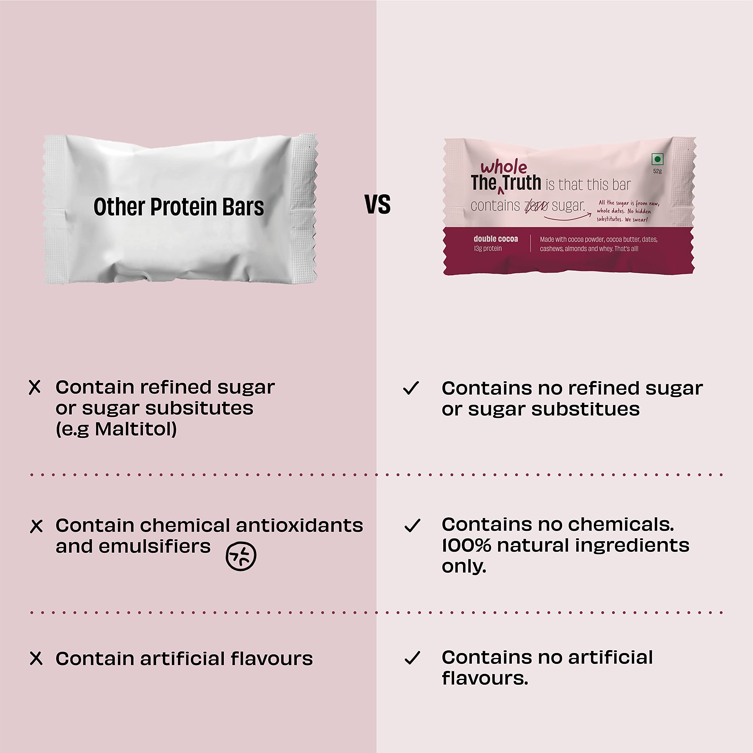 The Whole Truth Protein Bars|Choco Variety (2 Double Cocoa Bars2 Coconut Cocoa Bars2 Peanut Cocoa Bars)|Pack Of 6 X 52 Gram|No Added Sugar|No Preservatives|No Artificial Sweeteners|Healthy Snack