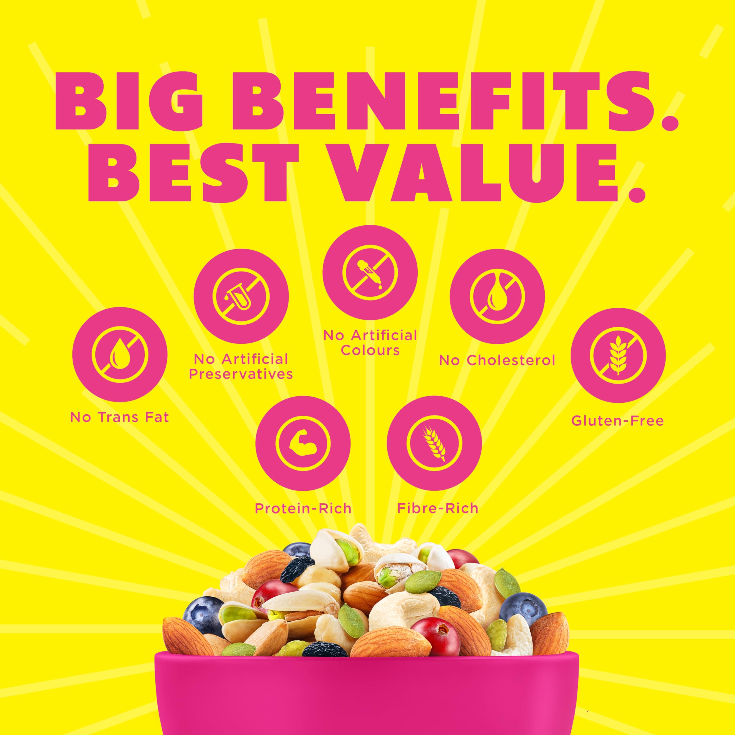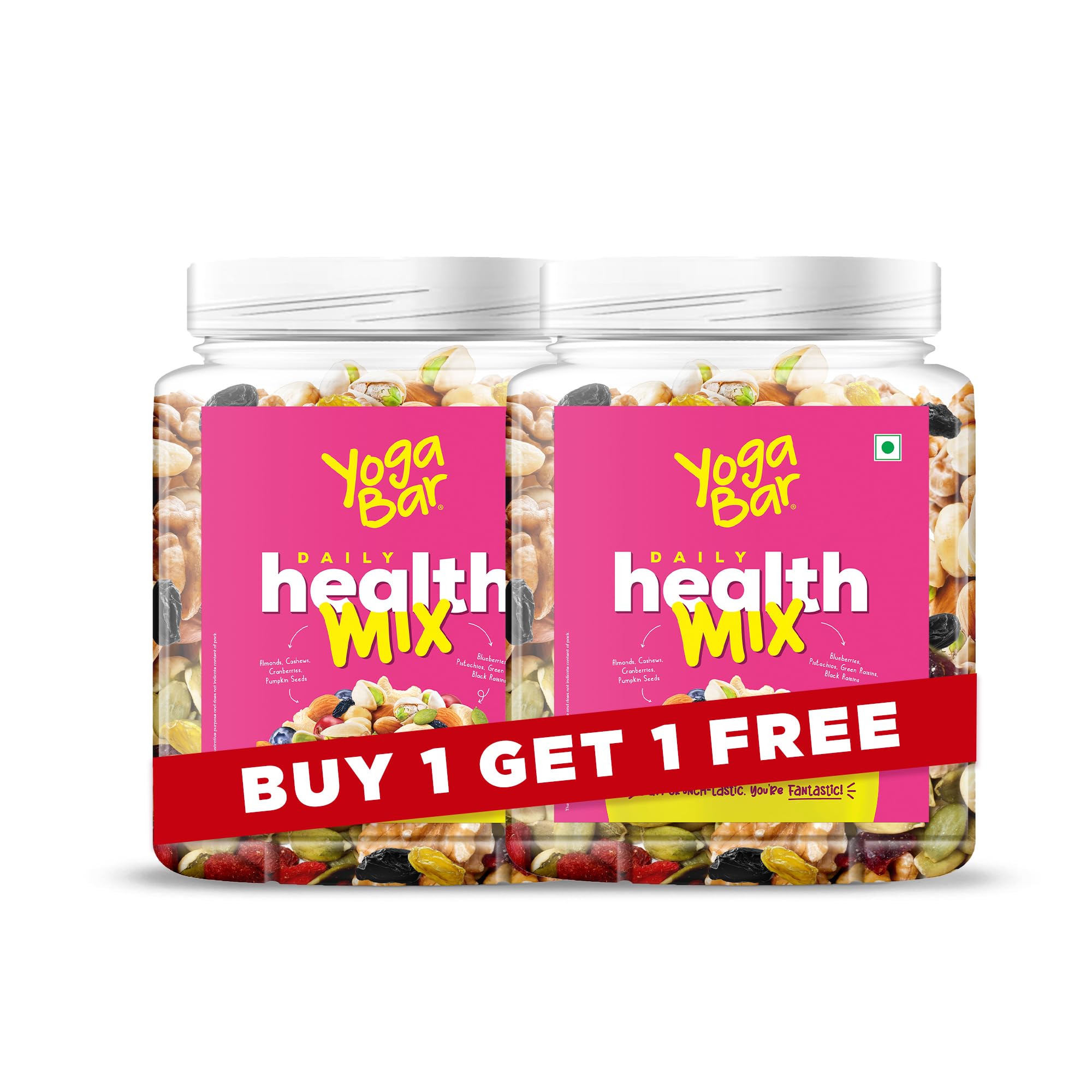 Discover the perfect blend of nutrition and taste with this exclusive combo pack featuring Panchmeva and Daily Health Mix. The Panchmeva jar contains a premium assortment of handpicked nuts and dried fruits following the traditional Indian mix of five wholesome ingredients. The Daily Health Mix complements it perfectly with its thoughtfully curated selection of nutritious dry fruits and nuts. Each jar is carefully packed to maintain freshness and comes with an easy-to-use resealable lid. These mixes are ideal for daily snacking adding to breakfast cereals or as a quick energy boost during busy days. The convenient packaging makes it perfect for storage and maintains the crunchiness of nuts and natural sweetness of dried fruits. This value combo pack offers excellent value with its buy-one-get-one-free offer making it an economical choice for health-conscious households. Add these nutritious mixes to your daily routine for a perfect balance of taste and wellness.