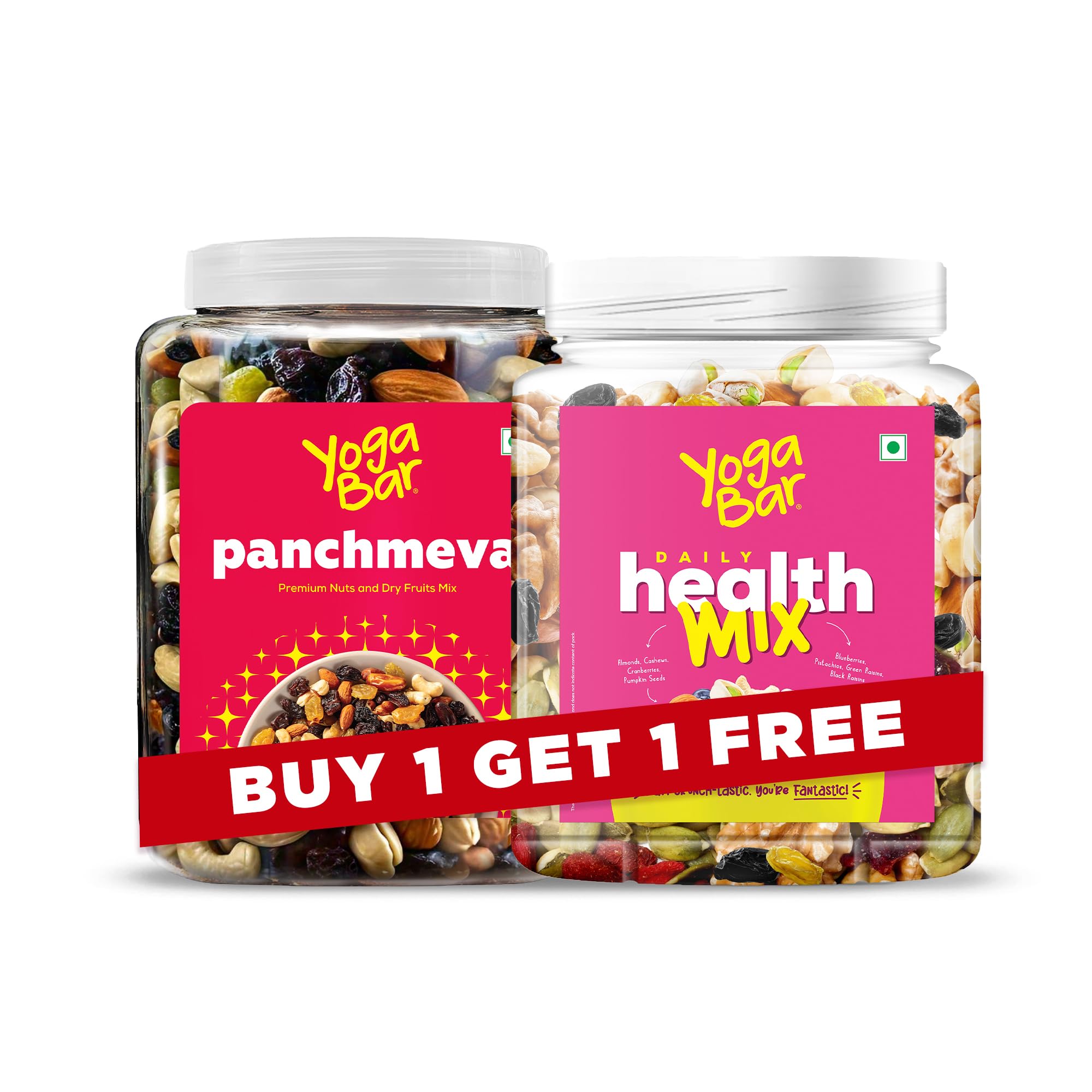 Yogabar Panchmeva and Daily Health Mix Combo Pack Premium Nuts and Dry Fruits Mix