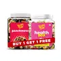 Discover the perfect blend of nutrition and taste with this exclusive combo pack featuring Panchmeva and Daily Health Mix. The Panchmeva jar contains a premium assortment of handpicked nuts and dried fruits following the traditional Indian mix of five wholesome ingredients. The Daily Health Mix complements it perfectly with its thoughtfully curated selection of nutritious dry fruits and nuts. Each jar is carefully packed to maintain freshness and comes with an easy-to-use resealable lid. These mixes are ideal for daily snacking adding to breakfast cereals or as a quick energy boost during busy days. The convenient packaging makes it perfect for storage and maintains the crunchiness of nuts and natural sweetness of dried fruits. This value combo pack offers excellent value with its buy-one-get-one-free offer making it an economical choice for health-conscious households. Add these nutritious mixes to your daily routine for a perfect balance of taste and wellness.