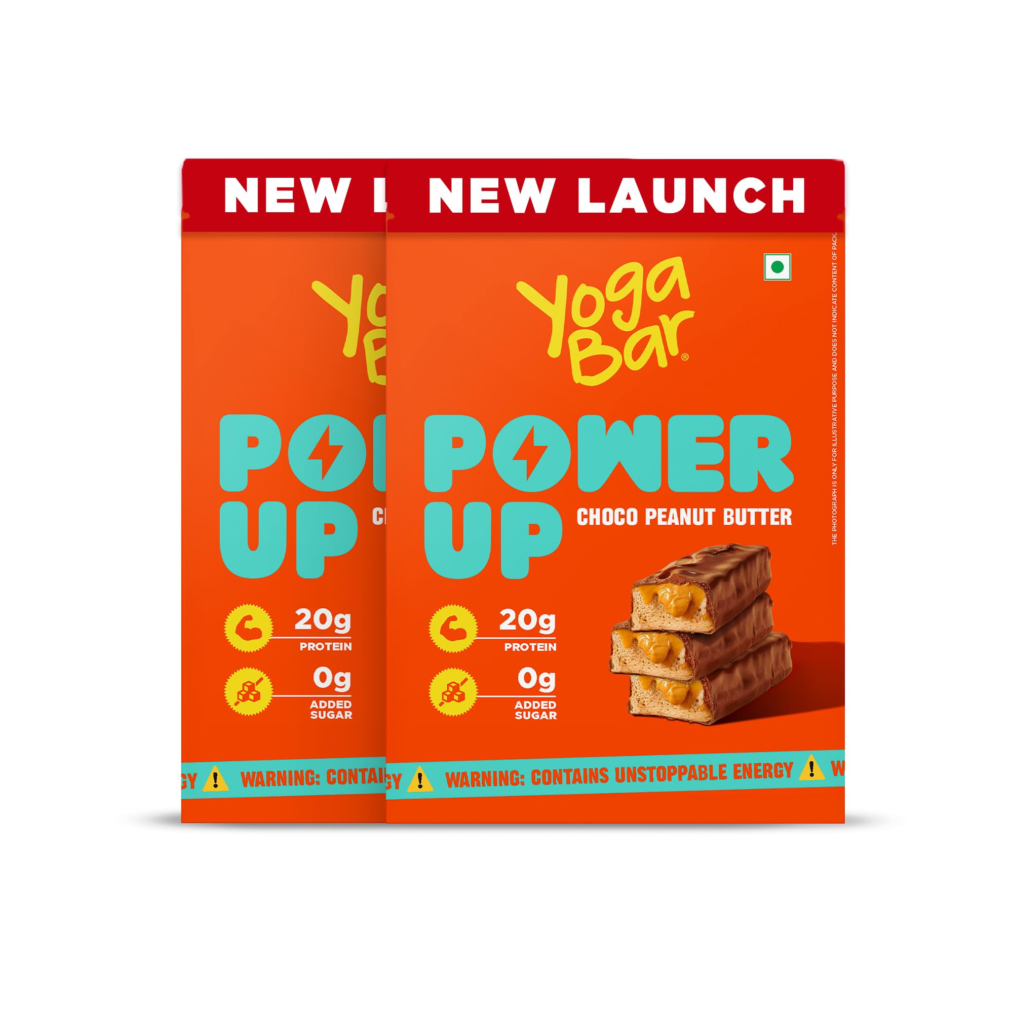 Yogabar Power Up 20g Protein Bar (10 Bars Choco Peanut Butter) | No Added Sugar Protein Bars | Premium High Protein Blend - Whey Protein Concentrate Isolate Peanuts & Soy | Healthy Protein Snacks