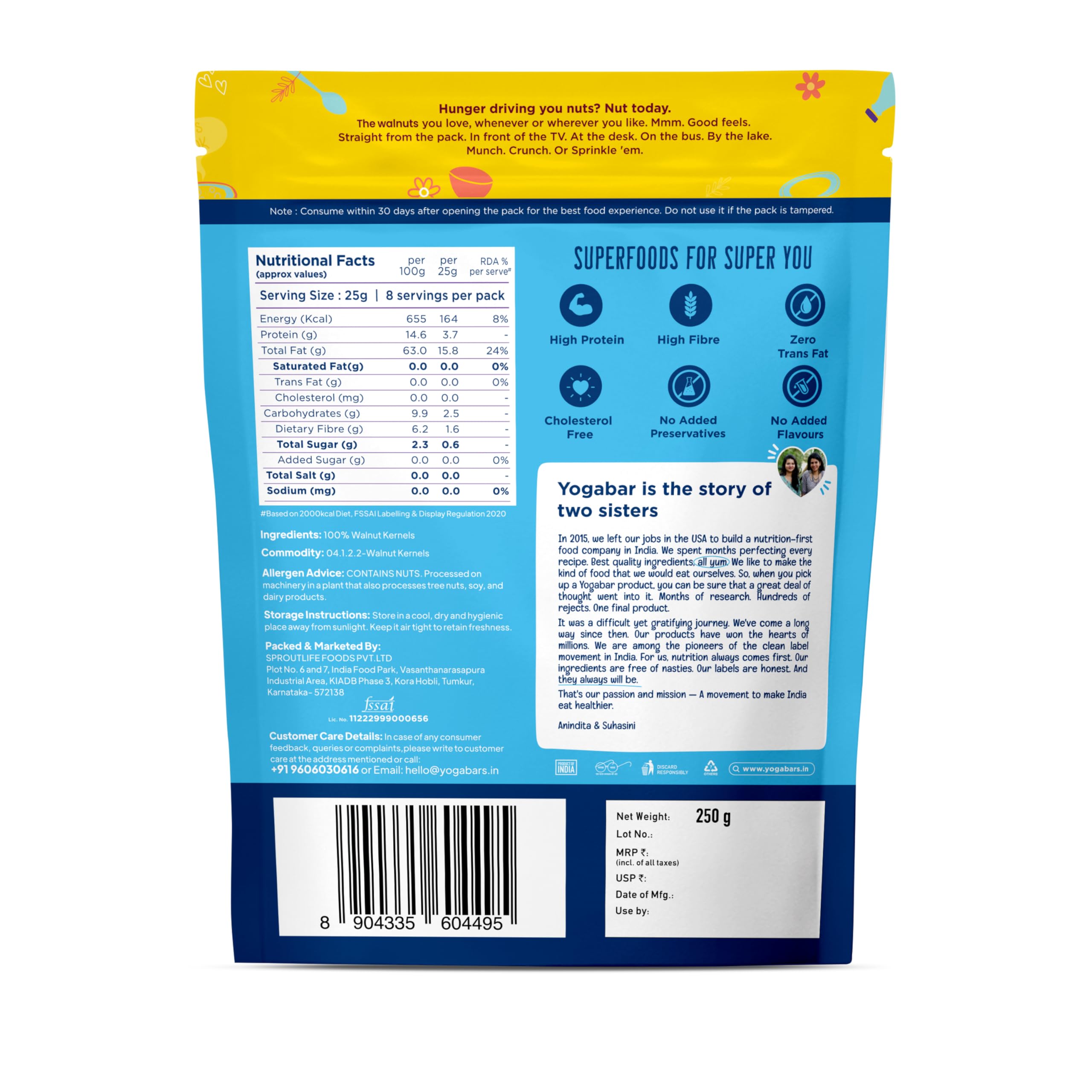 Yogabar Premium Walnuts 750g (250g x Pack of 3) High Protein and Fibre Zero Cholesterol Ethically Sourced