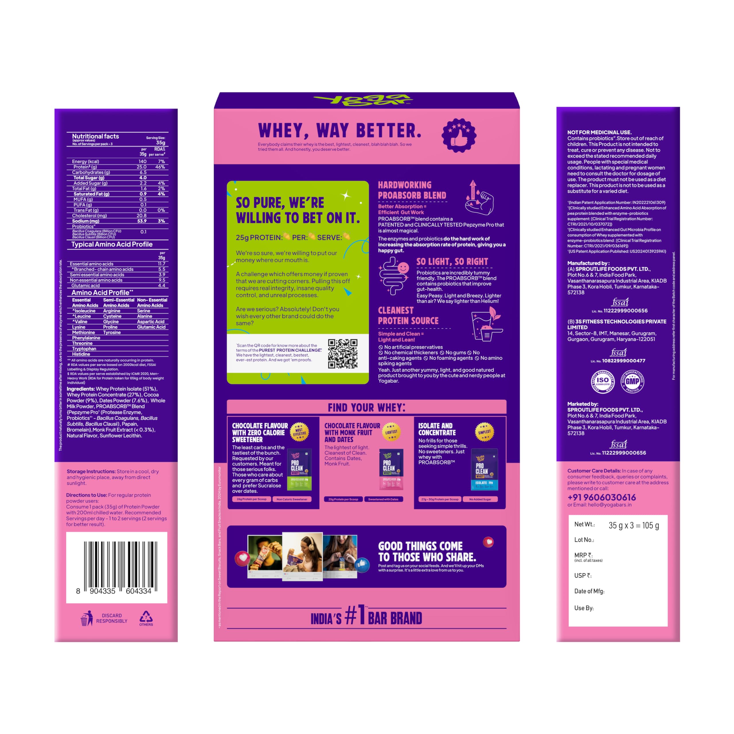 Yogabar Pro Clean Whey Protein Powder Chocolate Flavour with Monk Fruit and Dates 25g Protein ProAbsorb Blend Pack of 3 Sachets