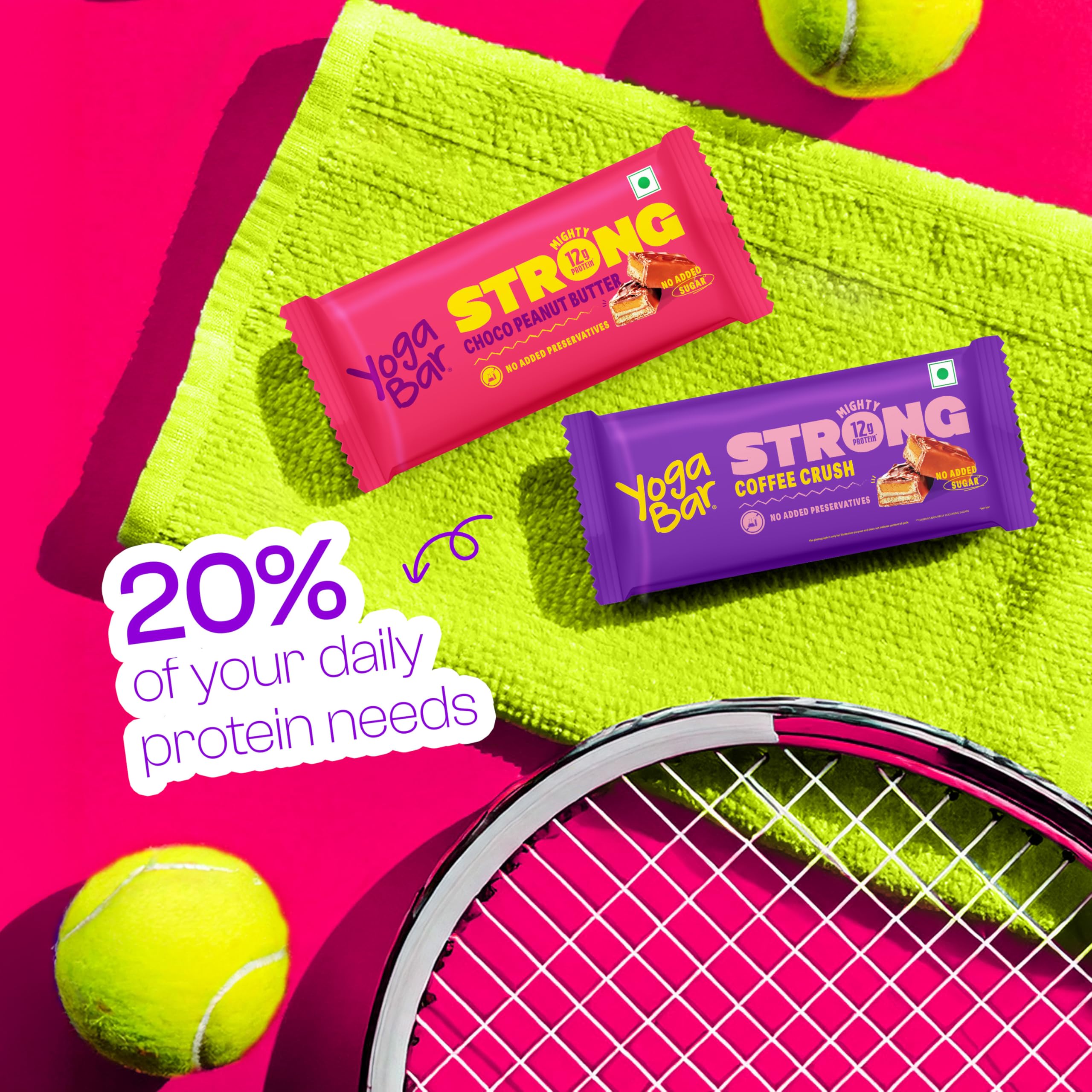 Discover the perfect blend of indulgence and nutrition with this Strong protein bar. Each bar packs a mighty 12g of protein making it an ideal companion for your fitness journey. The delectable combination of rich chocolate and creamy peanut butter creates an irresistible taste that satisfies both your sweet cravings and nutritional needs. What sets this protein bar apart is its thoughtful formulation - crafted without added sugar and free from preservatives it's a smarter choice for health-conscious individuals. Whether you're looking for a pre-workout energy boost post-workout recovery snack or just a wholesome treat to keep you going through the day this protein bar delivers on both taste and nutrition. The convenient packaging makes it perfect for on-the-go consumption fitting easily in your gym bag or office drawer. Each bite offers a satisfying texture with the perfect balance of crunch and chewiness making your protein intake an enjoyable experience rather than a chore.
