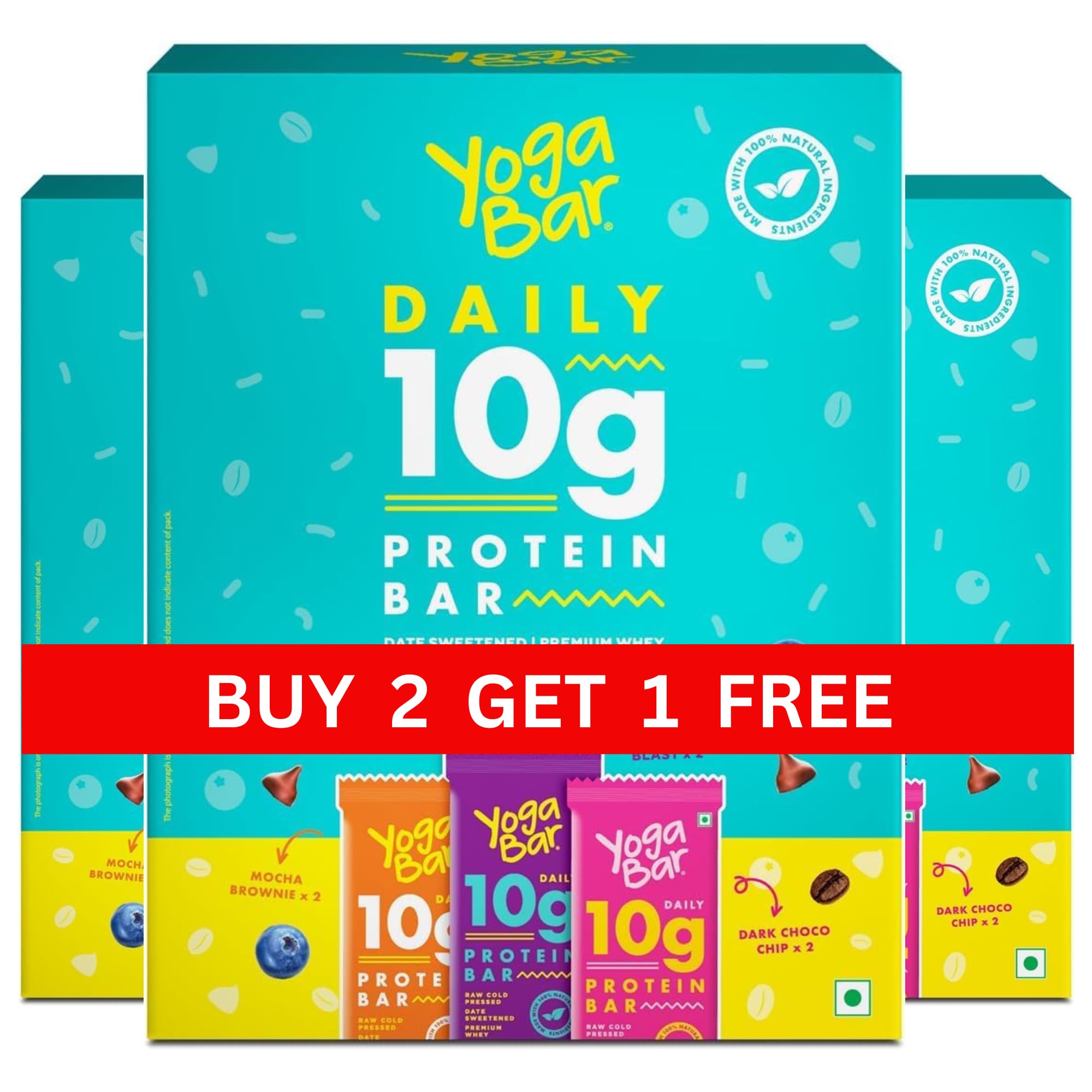 Yogabar Variety Pack 10 grams Protein Bars [Pack of 18], Protein Blend & Premium Whey