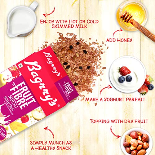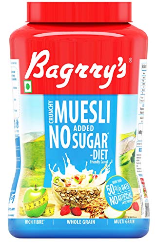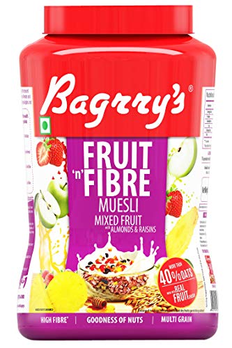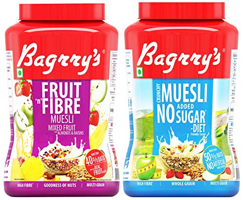 Bagrry's Fruit N Fibre Muesli, Mixed Fruit, 1000g and Bagrry's No Added Sugar Crunchy Muesli Jar, 1000g
