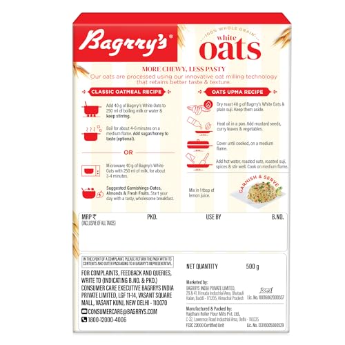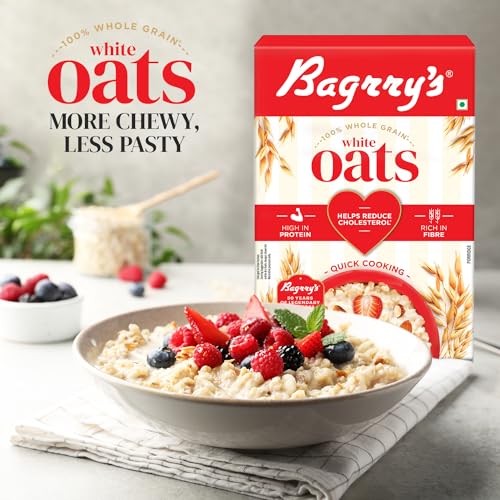 Energy That Persists Keeping You Active: Bagrry's White Oats are rich in fibre vitamins and minerals. They contain soluble fibre called beta glucan which can help slow blood glucose spikes keep you full and improve satiation. Oatmeal can be a good option