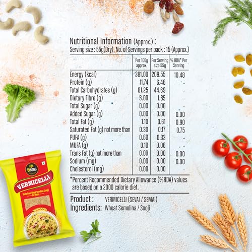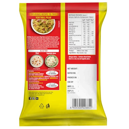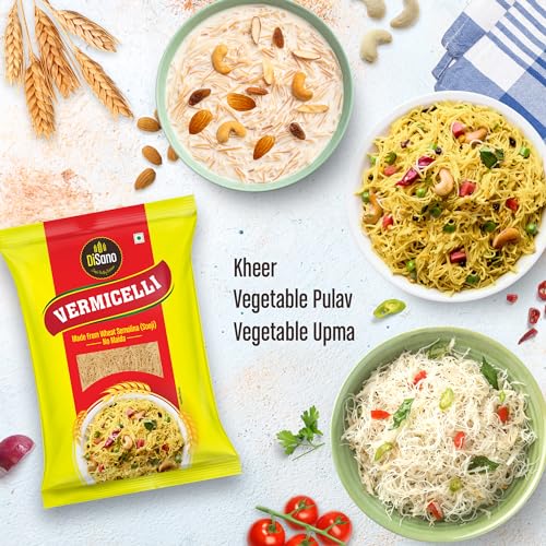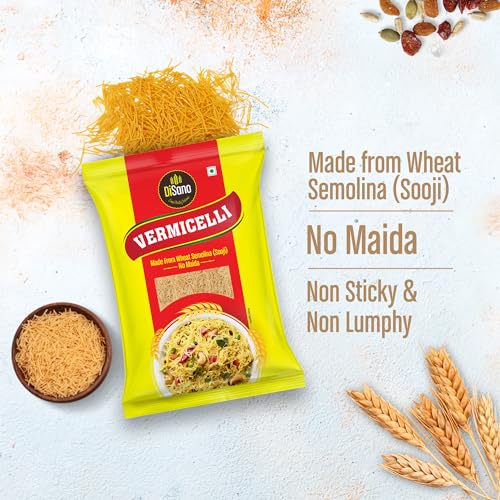 DiSano Vermicelli is very tasty easy to cook for breakfast and dinner. Made from Wheat Semolina (Sooji).