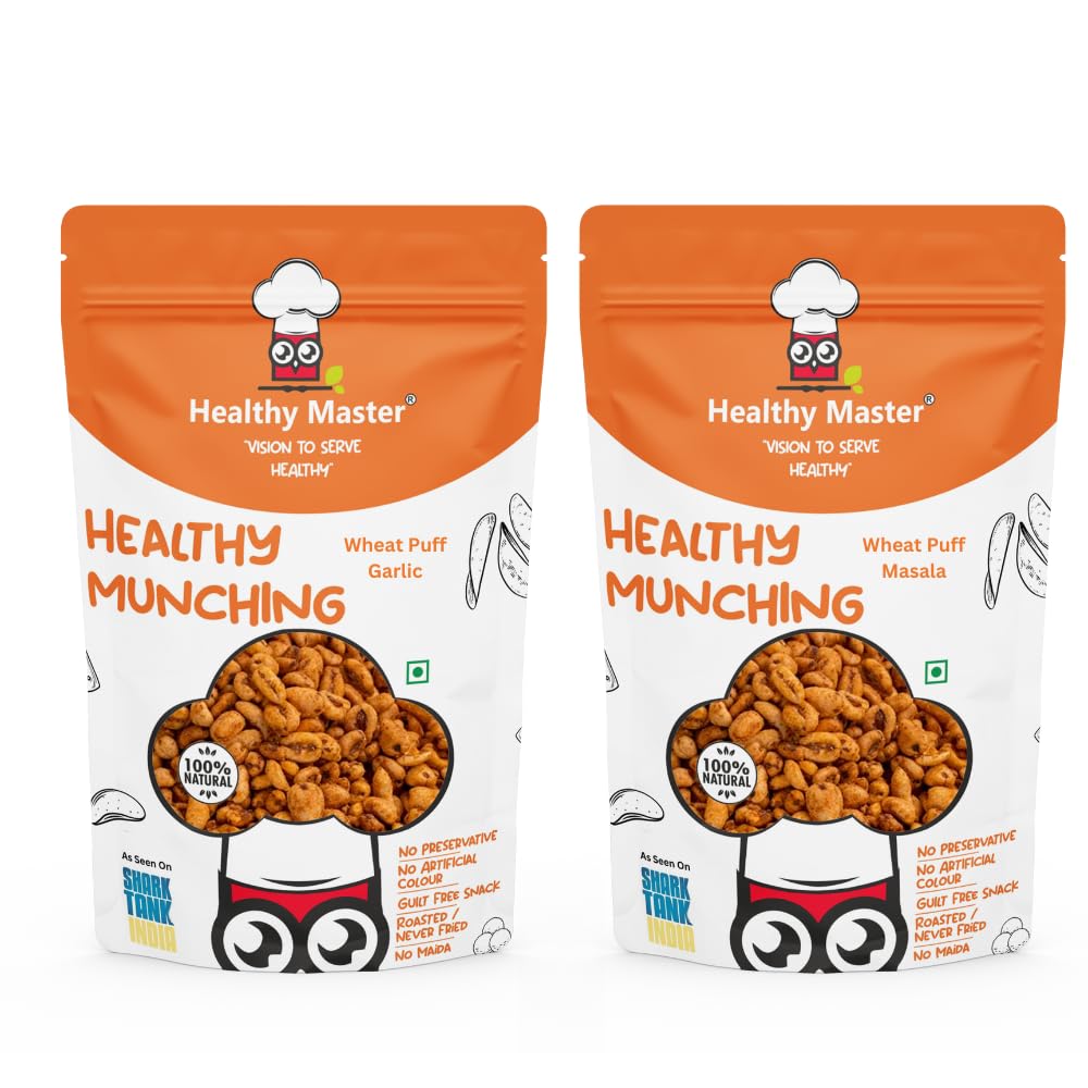 HEALTHY MASTER Vision to serve healthy Wheat Lovers - 300 G (Wheat Puff Masala 150 G Wheat Puff Garlic 150 G)| Weight Loss | Oil Free | Roasted
