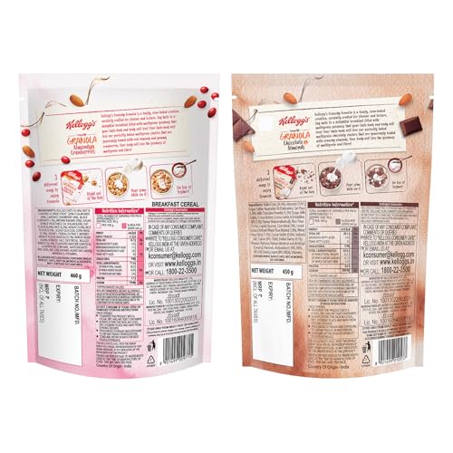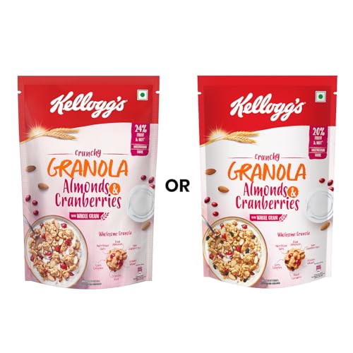 Kellogg's Crunchy Granola Almonds and Cranberries 460gNew KelloggCrunchy Granola is toasty oven-baked creation carefully crafted for flavour and texture. Your taste-buds will love our perfectly baked clusters that are generously loaded with the goodness of 5 grain and 24 Percent Fruit and Nut. It is loaded with yummy cranberries and real almonds to give your day the perfect start. Enjoy baked multigrain clusters of whole-grain oats wheat corn rice and barley generously loaded with real almonds and cranberries.Kellogg's Crunchy Granola Chocolate & Almonds 450 gKellogg's crunchy granola is a toasty oven-baked creation carefully crafted for flavour and texture. Say hello to a delightful breakfast filled with multigrain goodness that your taste-buds and body will love. Your taste-buds will love our perfectly baked chocolaty multigrain clusters that are generously loaded with crunchy almonds. Your body will love the goodness of multigrain and fibre.