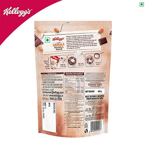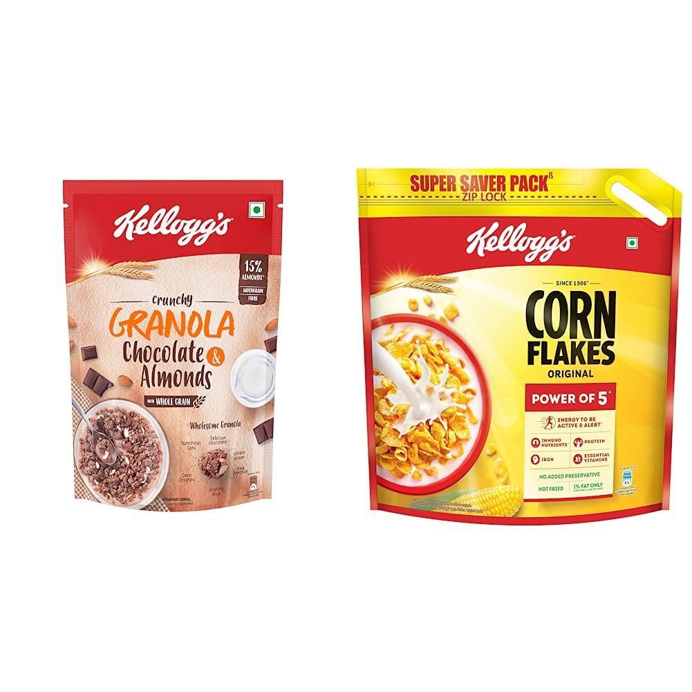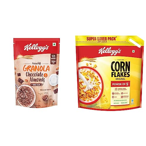 Kellogg's Crunchy Granola Chocolate & Almonds | Breakfast Cereals | Multigrain Flakes 450g Kellogg's Corn Flakes Original High in Iron High in B Group Vitamins Breakfast Cereals 1.2 kg Pack