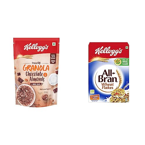 Kellogg's Crunchy Granola Chocolate & Almonds Cereals Multigrain Flakes 450g + All Bran Wheat Flakes Protein Fibre Iron vitamin B1B2B3 and B6 Low Fat B12 and Folate Cholesterol Free 425g