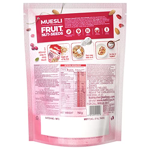 Kellogg's Muesli Crunchy Fruit And Nut Multi-Grain Cereal High In Iron Vitamin B And Source Of Fibre 750g