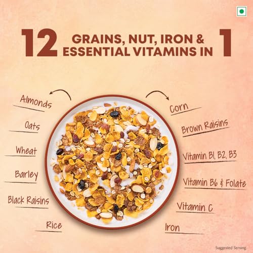 • Nourishing & Tasty Breakfast CerealSay Hi to a delightful POWER BREAKFAST filled with goodness of 12 in 1 bowl. It is infused with the goodness of multigrain almonds and raisins. This Muesli breakfast will help you kick-start your mornings. It is a nouris