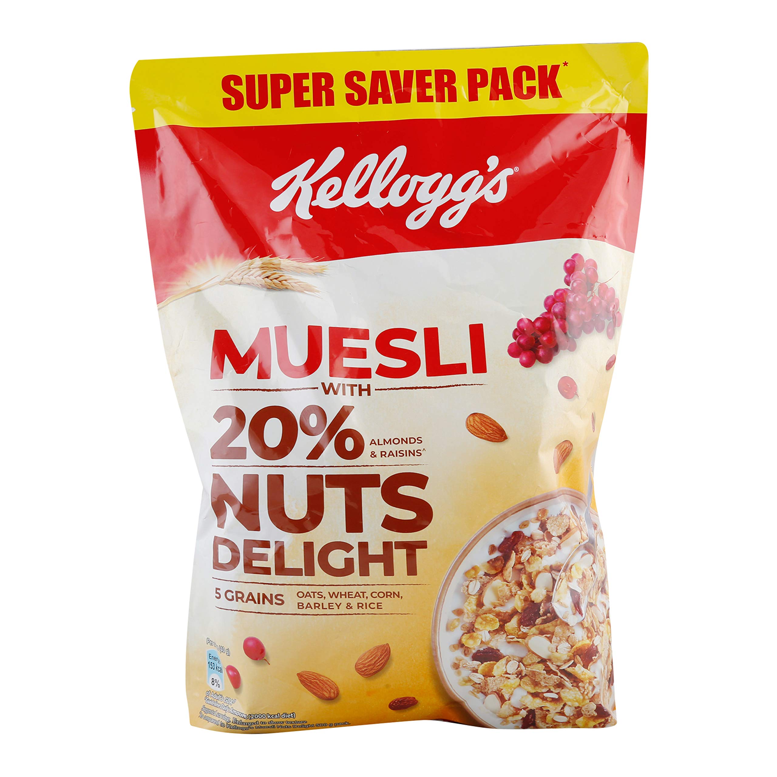 Kelloggs Muesli Nuts Delight is indeed a delightful mix of different ingredients like multigrains oats almonds dates and raisins. The presence of the nuts in the mixture makes it quite crunchy and when mixed with milk the taste is simply awesome. This breakfast cereal which is less boring than normal corn flakes can be quite pleasing for children who are always looking for something new to taste.