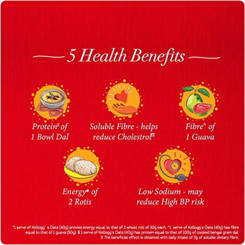 Just one serve of Kellogg OatsOne serve of Kellogg Oats (40g) provides energy that of 2 Wheat Rotis (30g each) Fibre that of 1 Guava (50g) and protein that of 100g cooked Bengal Gram dal.