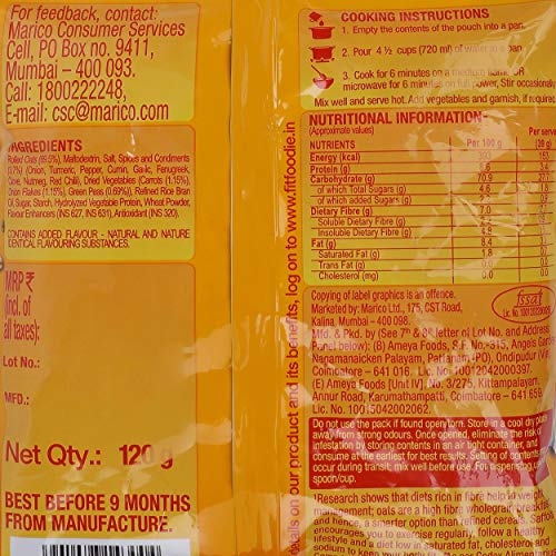 Saffola Masala Oats are bursting with flavour and are made from 100% natural wholegrain oats along with real vegetables and the choicest of masalas. Eating Saffola Masala Oats as part of your daily routine is not just fantastically healthy and delicious but also requires minimal effort for preparation ready in just 3 minutes. It satisfies the cravings for those savory flavours as a breakfast cereal or during different times of the day.