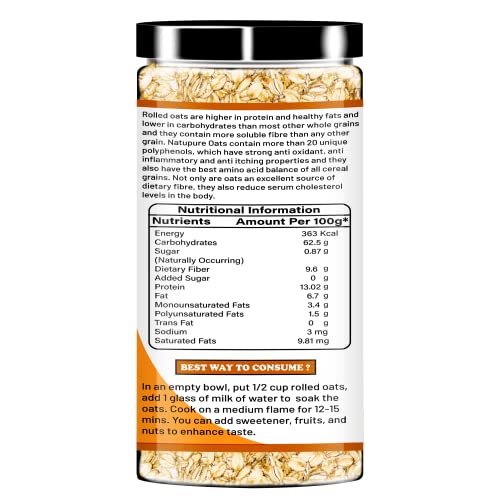 Natupure Rolled Oats High Protein and Fibre | 500gm Pack of 2