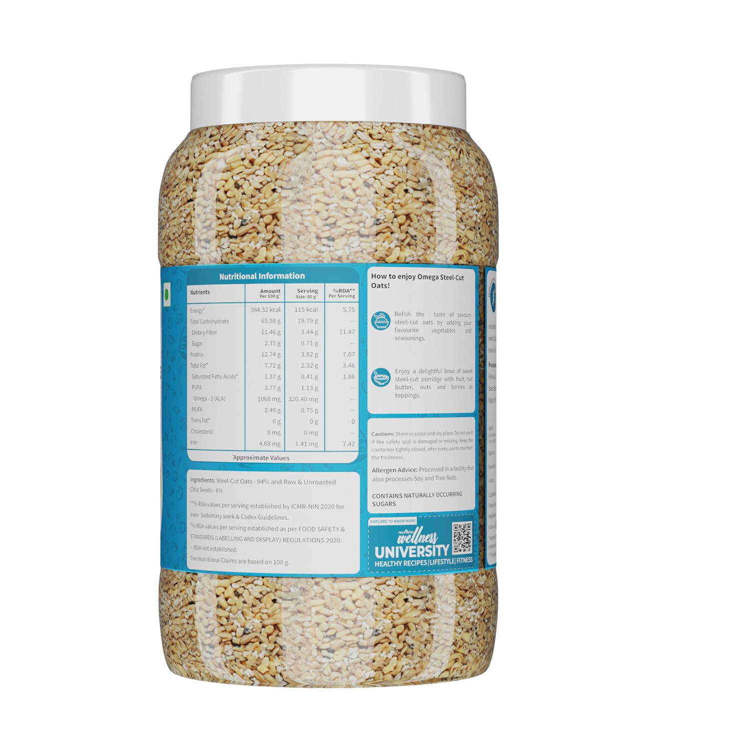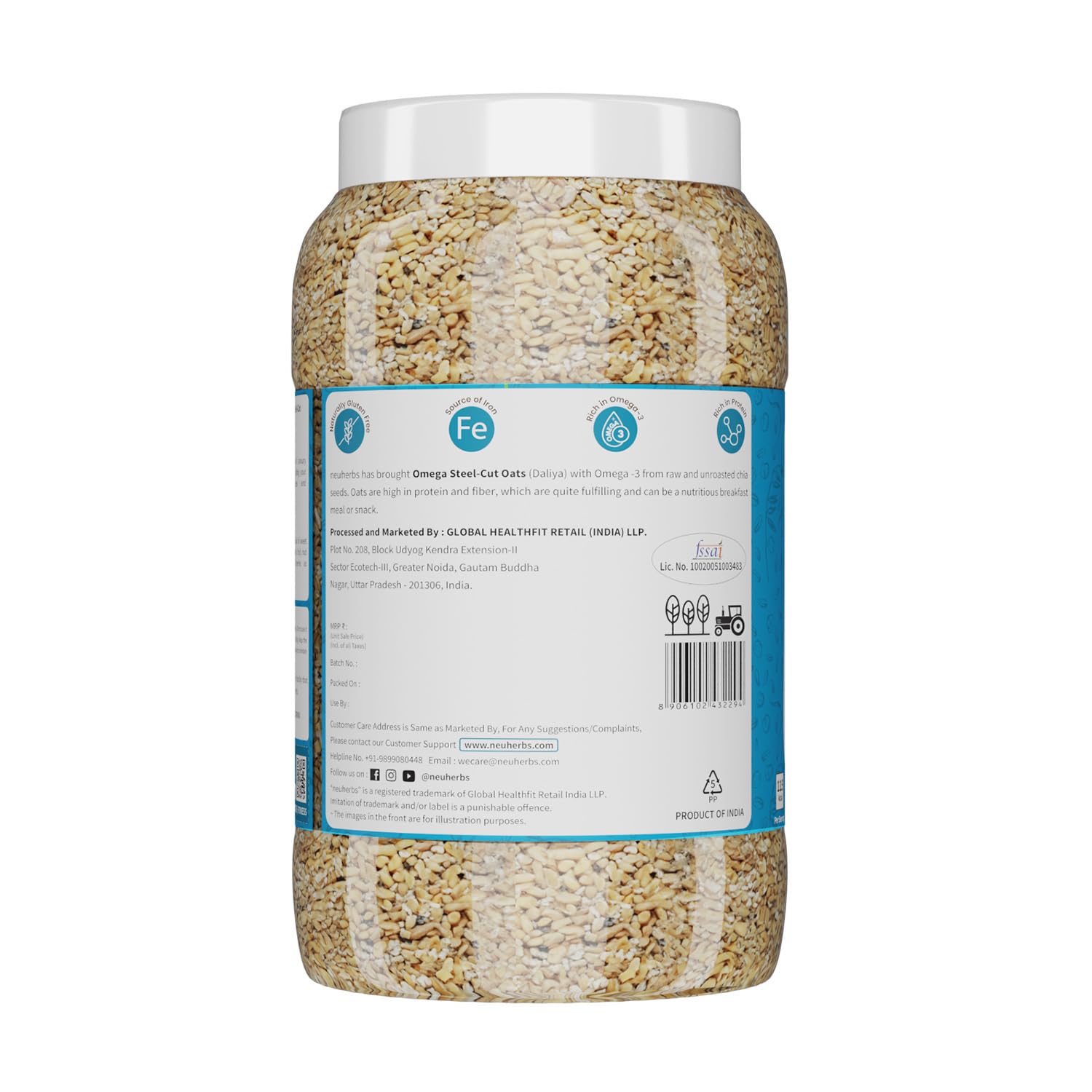 Neuherbs brings to you Omega Steel-Cut Oats which are 100% natural and clean providing you all the health benefits of healthy oats. These are known to be high protein oats which are also rich in fiber specifically in beta- glucan that help you keep fuller for longer or your tummy satisfied so that you can avoid overeating on junk food and hence it assists in weight management. Along with this it helps manage blood sugar levels. Neuherbs Steel-Cut Oats provide you with additional benefits of Omega-3 (Alpha Linolenic Acid) that is known to be very beneficial for managing blood cholesterol levels. This nutritious diet food is naturally gluten-free preservatives free and does not contain any added sugar flavour to help you reap most of the known benefits of oats.