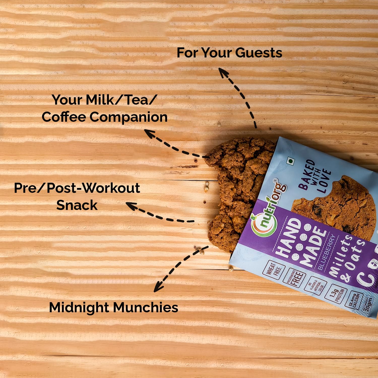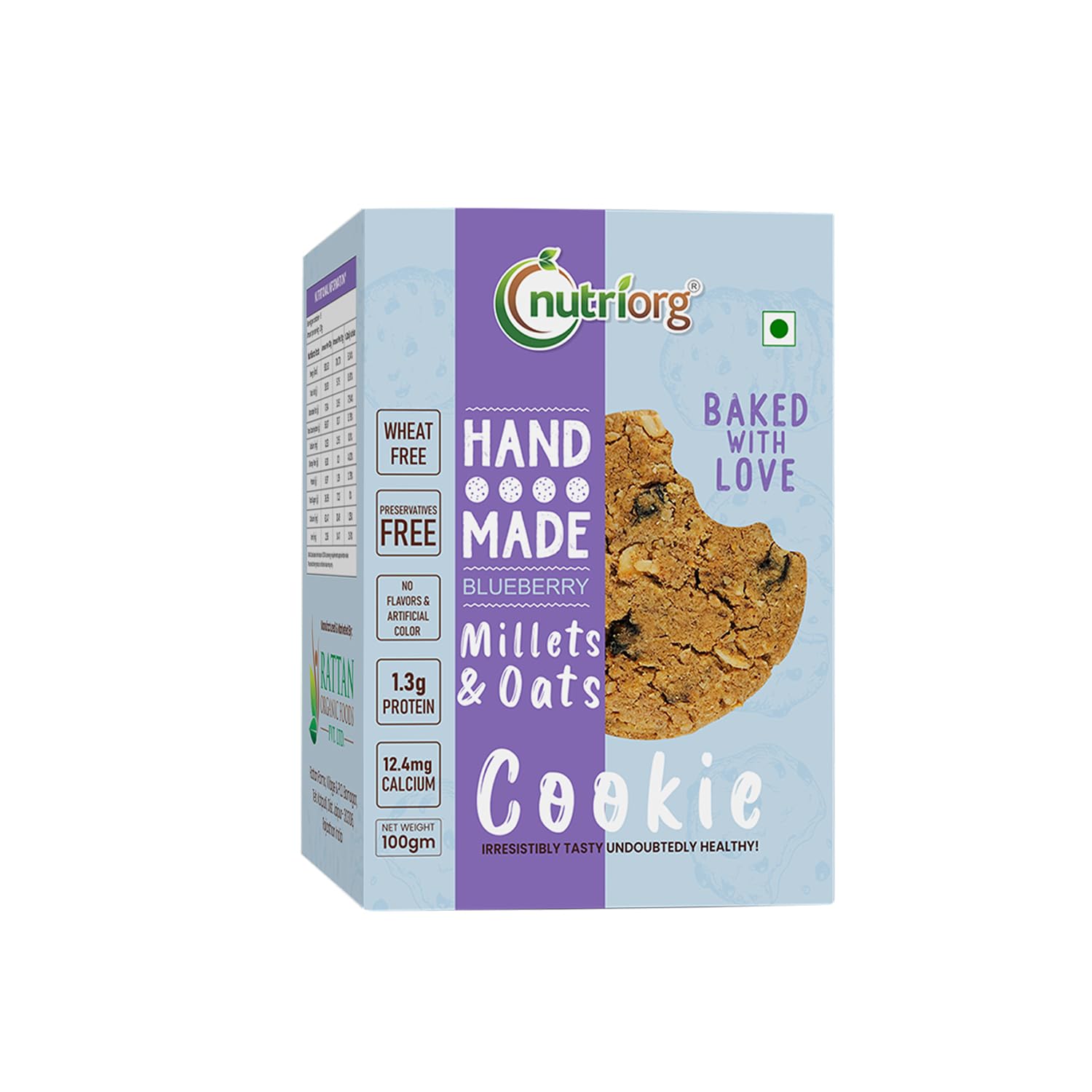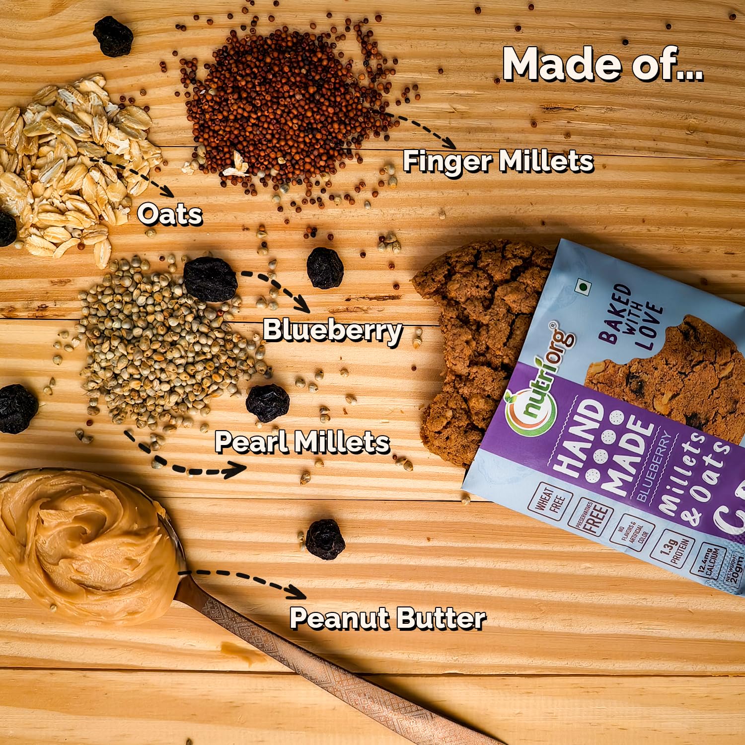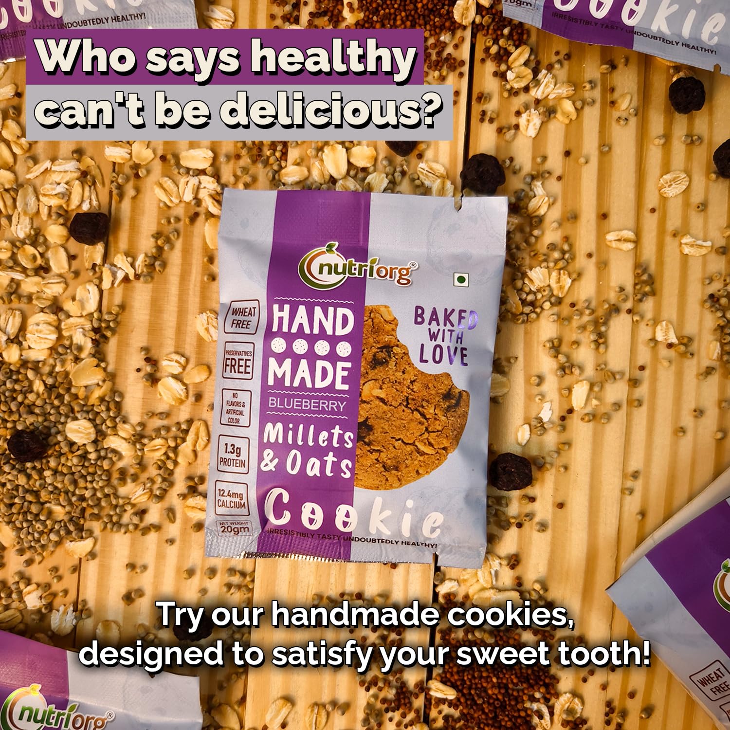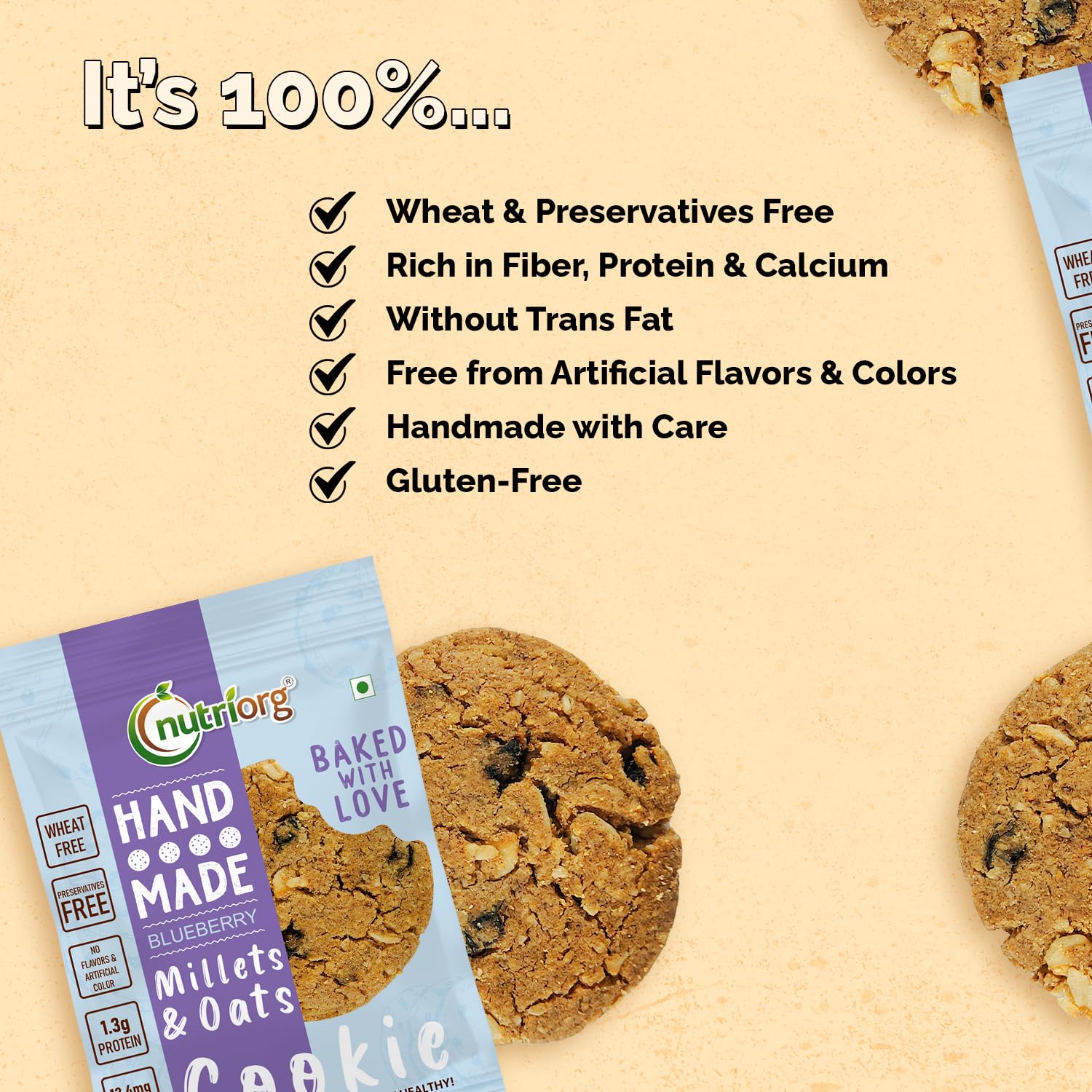 NUTRIORG Blueberry Cookies | 5 Cookies with Hand Made | Millets & Oats - 100 GM