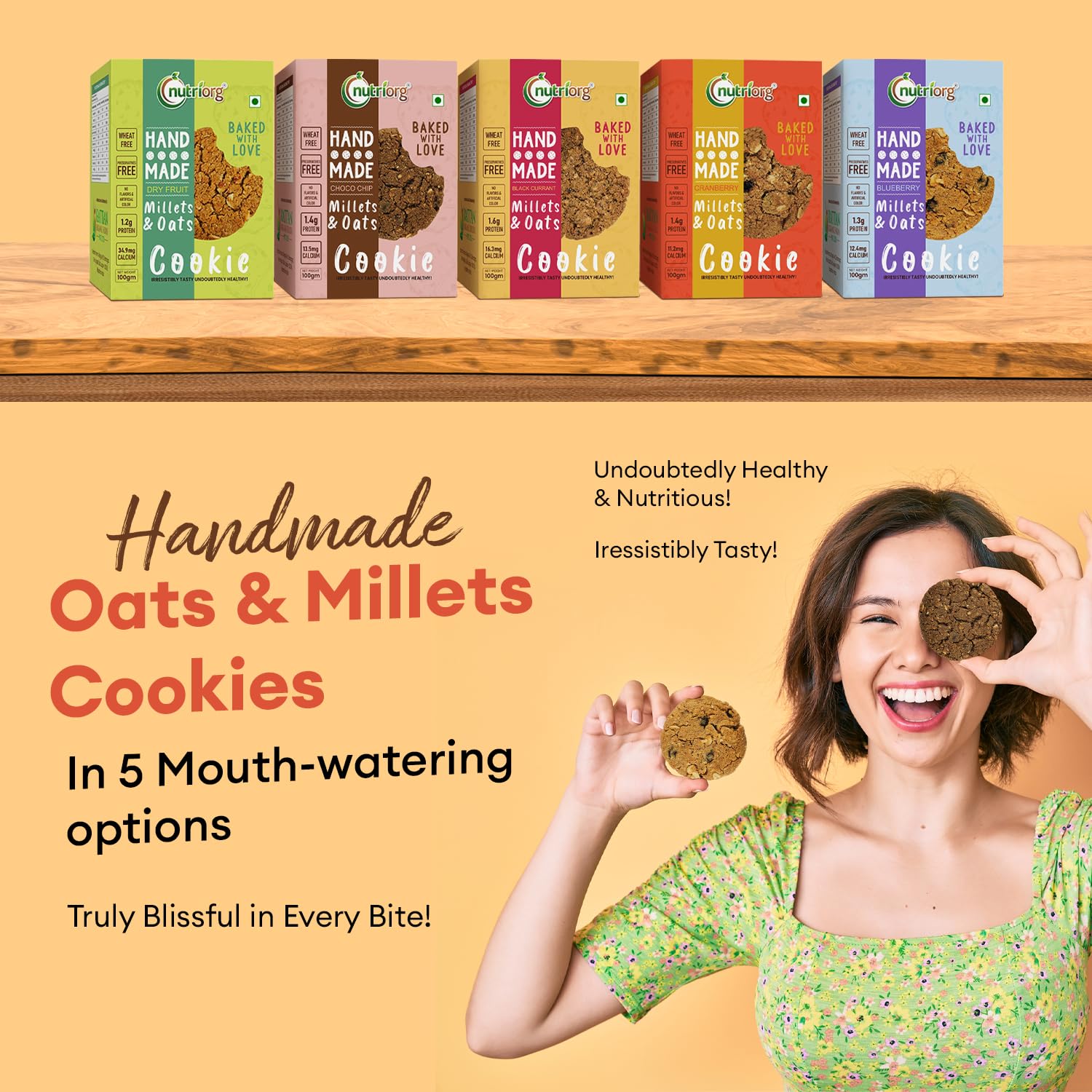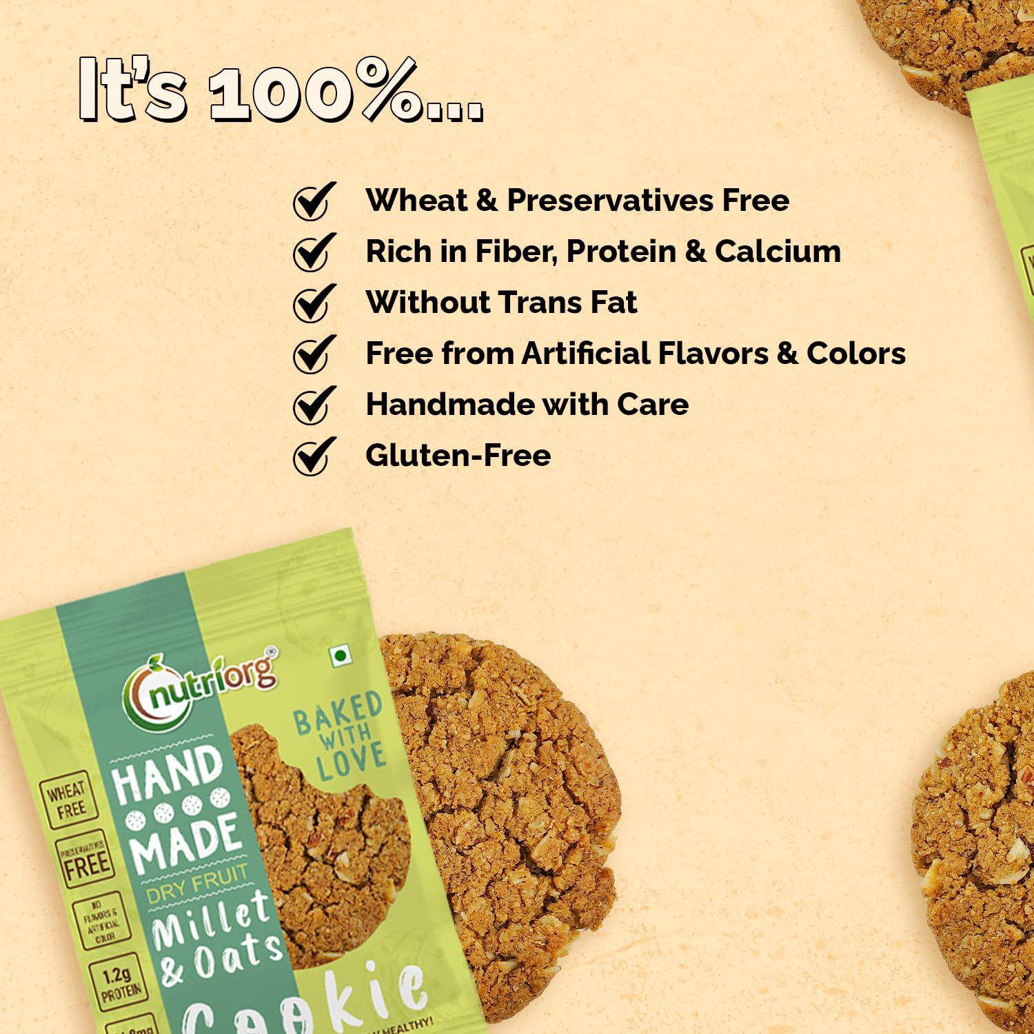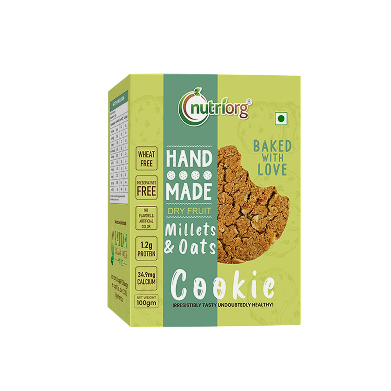 NUTRIORG Dry Fruit Cookies | 5 Cookies with Hand Made | Millets & Oats - 100 GM