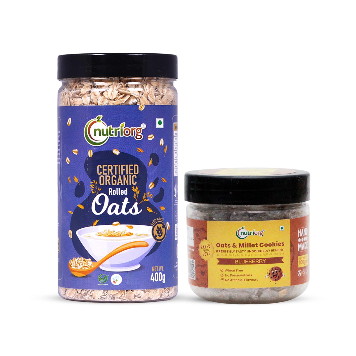 Nutriorg Gluten Free Rolled Oats 500g & Oats Cookies Blueberry Flavor 110g