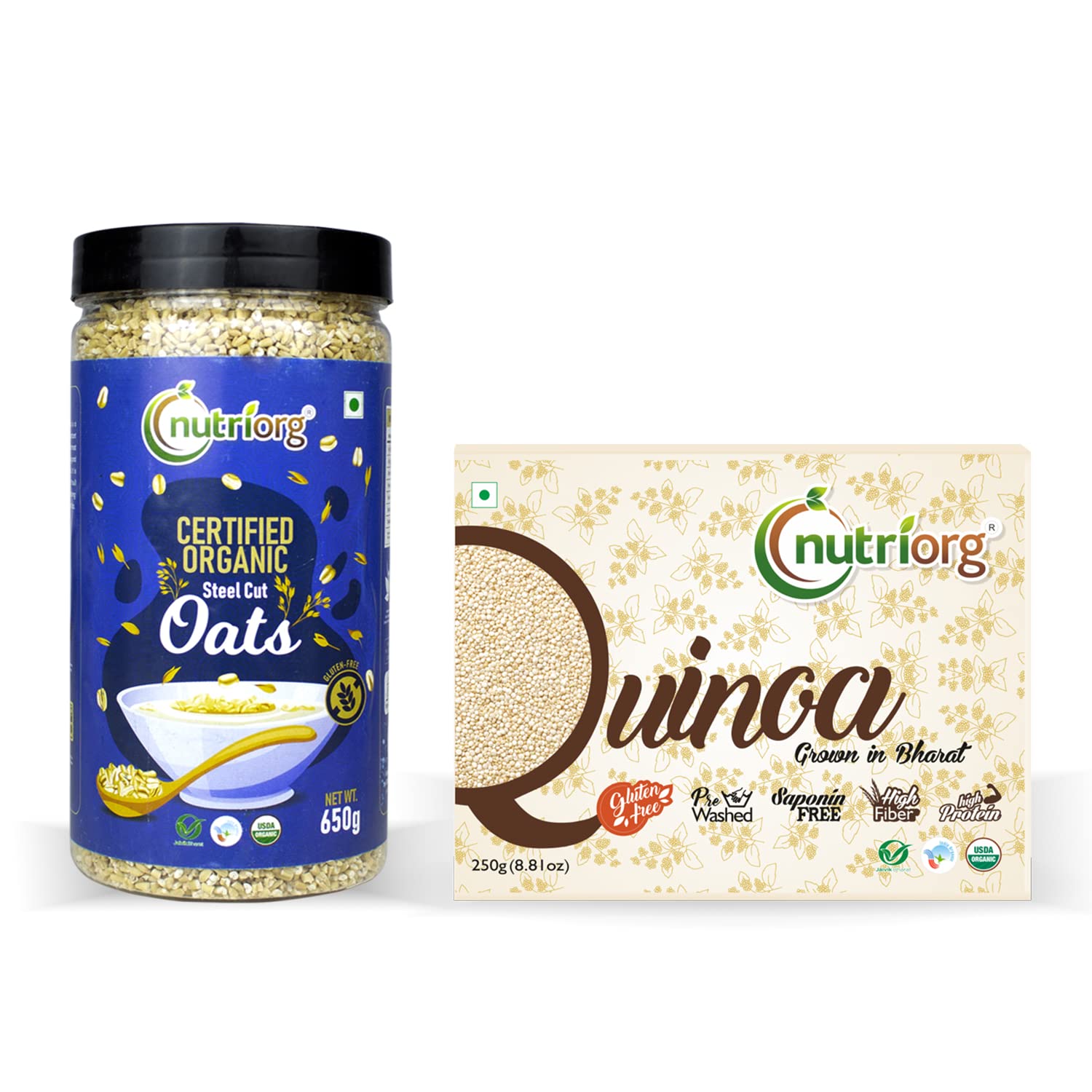Nutriorg Organic Quinoa & Steel Cuts Oats (Combo of 2) | Protein Rich Super Food | 100% Whole Grain | Weight Management