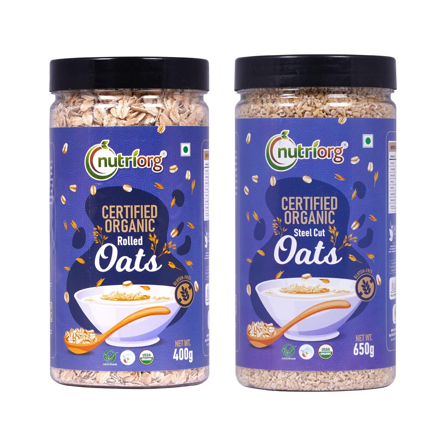 Nutriorg Organic Rolled & Steel Cuts Oats 1050g (Combo of 2) | Weight Management | High Fiber Protein Rich Oats