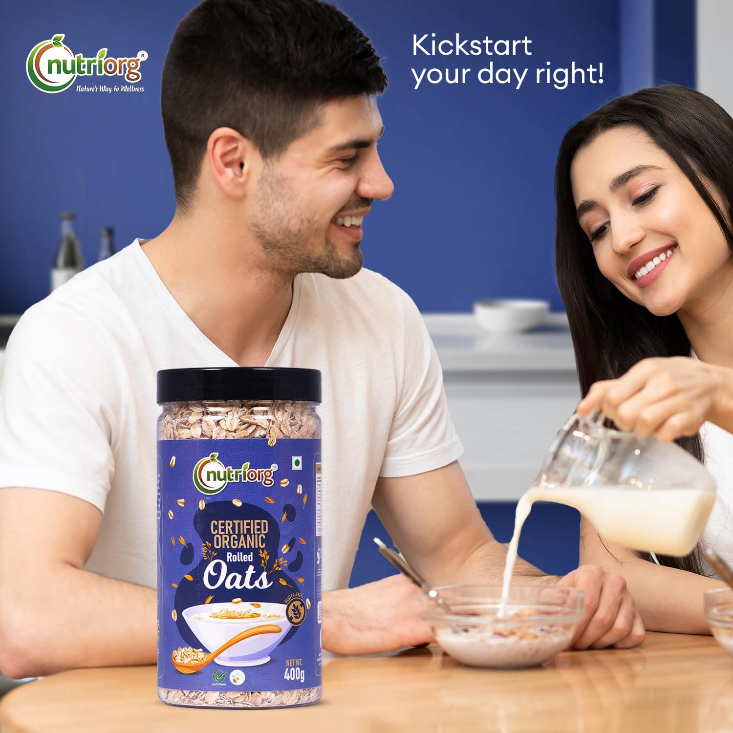Nutriorg Organic Rolled Oats & Certified Organic Honey 50g (Combo of 2) | For Weight Loss | Fiber Rich Oats