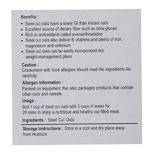 Love oats! Nutriwish brings you the gluten-free Steel Cut Oats pack for a healthy and fulfilling addition for your breakfast. Rich in antioxidants it lowers cholesterol levels and improves blood sugar control. Oats make for an easy balanced breakfast and curbs your mid-morning cravings as it has a substantial balance of fibre and protein. It improves general metabolic health by reducing blood pressure and cholesterol levels. Add Nutriwish Steel Cut Oats in muffins granola cookies or other baked goods to make them wholesome and healthy.