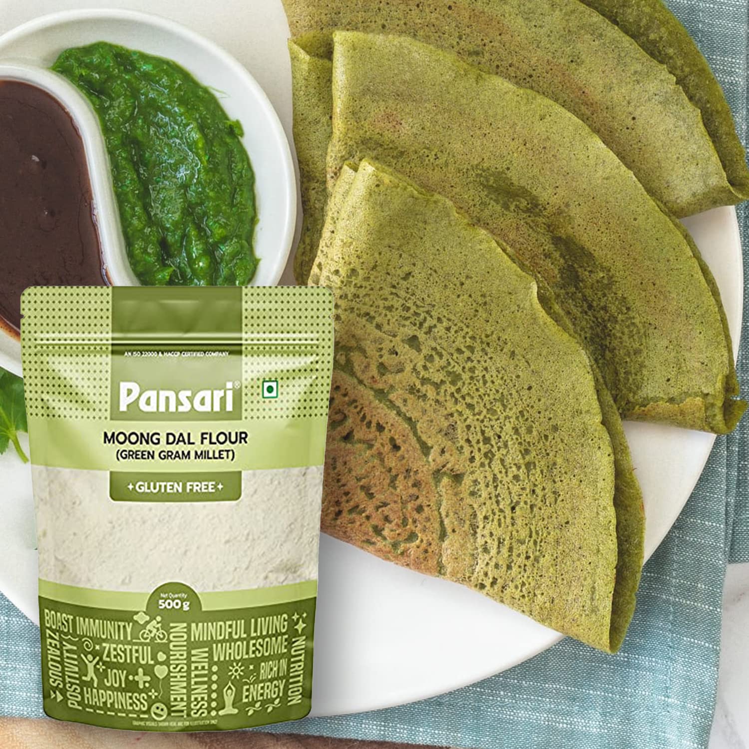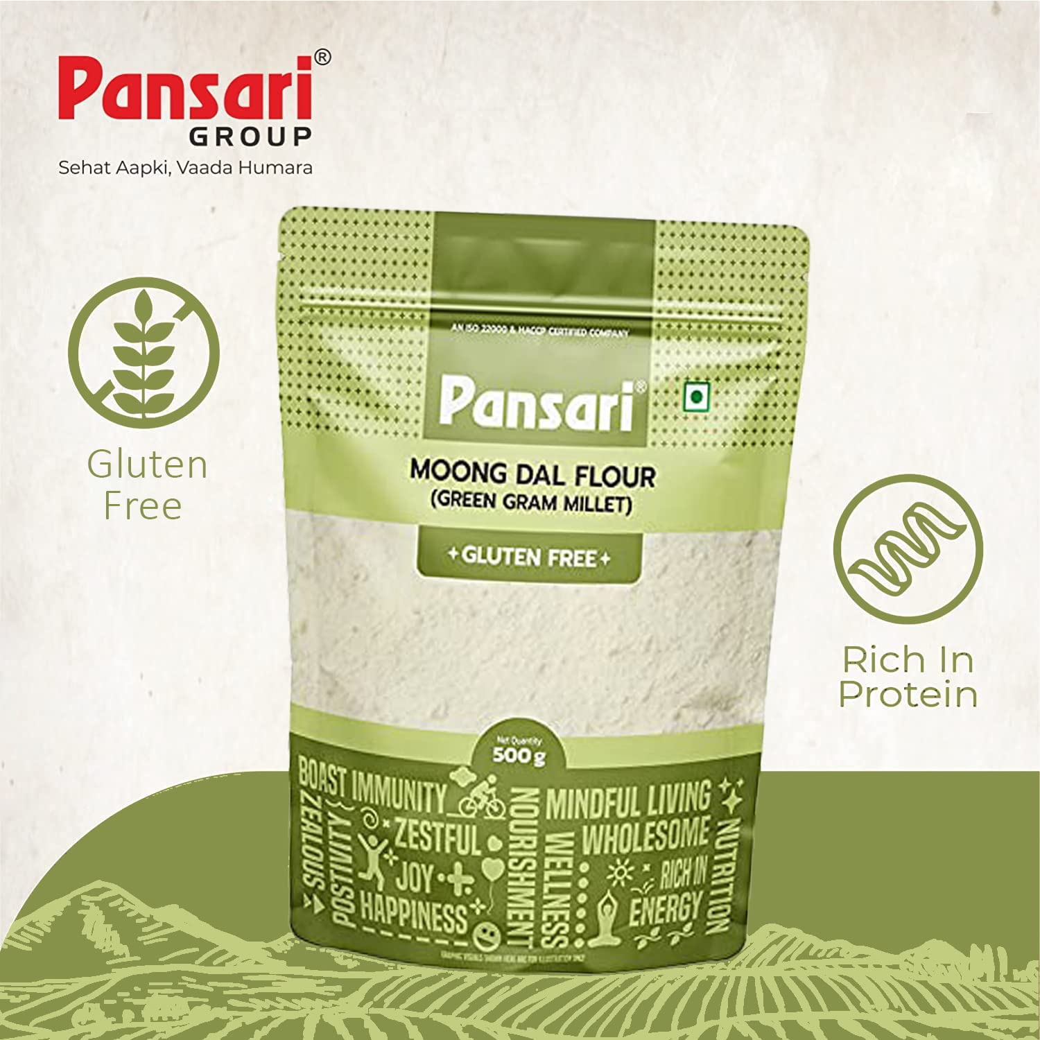 HomeGroceryHealthy BreakfastOats & MuesliPansari Moong Dal Flour/Green Gram Millet with Rich in Nutrients|Helps in Weight Management|Helps in Digestion & Heart -500 Gm