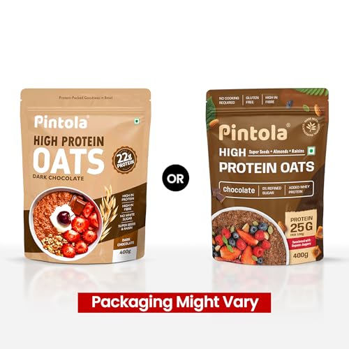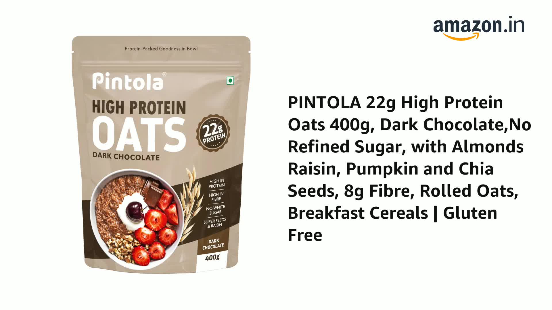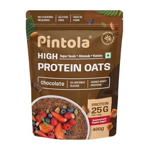 PINTOLA 25g High Protein Oats 400g, Dark Chocolate,No Refined Sugar, with Almonds Raisin, Pumpkin and Chia Seeds, 8g Fibre, Rolled Oats for weight loss, Breakfast Cereals | Gluten Free