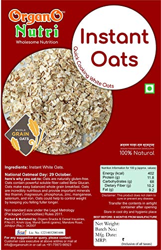 OrganoNutri instant Oats are among the healthiest grains on earth and are Naturally Gluten Free. This whole grain is a great source of important vitamins minerals fibre and antioxidants. Reduce fat with a bowl of OrganoNutri Oats. They are loaded with loads of nutrients especially fibre that fills you up controls your appetite and reduces your unnecessary hunger pangs thus helping you maintain weight. Regularize your bowel The High Fibre content of Oats promotes healthy bowel movements and reduces the risk of gastrointestinal problems. Manage your blood sugar For the same reason that it helps to reduce hunger pangs it also helps stabilize the blood glucose level and prevents blood sugar spiking. Lower the risk of heart diseases It can help manage your cholesterol level and blood pressure. oats contain essential vital micronutrients