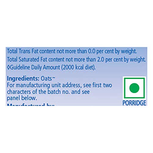 Product description Start your morning with a wholesome bowl of Quaker Oats- the perfect breakfast porridge for the whole family. Quaker oats is made from 100 percent wholegrain oats which is a natural source of carbohydrates protein and dietary fibre. It helps reduce the risk of high blood pressure and cholesterol. It is easy to prepare in just 3 minutes and blends into almost any recipe enhancing its nutritional value without compromising on taste. Preparation: Add ½ cup of Oats 1 glass skimmed milk and cook for 2 to 3 minutes on stove/microwave. Add sugar/honey as per your taste. Top it up with your favourite fruits and nuts to make it more delicious and nutritious. Nutritional information (per 100g): Energy - 407 Kcal Protein - 11.8 g Total Fat -9.5 g Total Carbohydrate - 68.5 g Total Dietary Fibre - 10 g Iron - 2.5 mg Magnesium - 106mg Sodium - 9.5 mg Zinc - 2.0 mg Ingredients: Oats About the brand - For over 135 years Quaker has unlocked the power of oats to help people get the perfect start to each day.