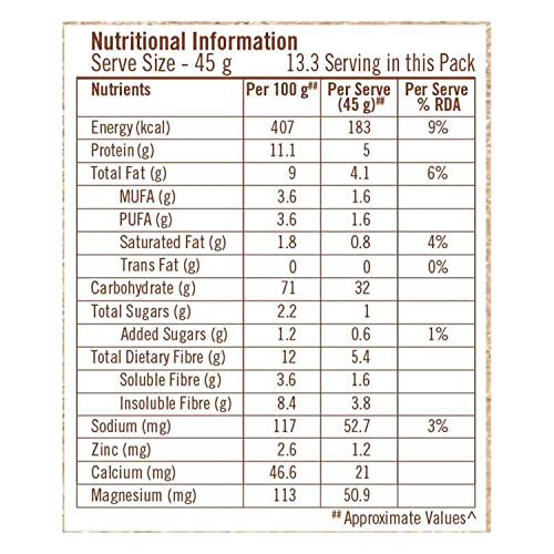 Quaker Oats Multigrain 600g Rolled Oats Wholegrain High Protein & Fibre for Weight Loss Dalia Porridge" Start your day with the Power of 5 with Quaker Oats Multigrain! Get the goodness of 5 with Whole Oats Wheat Barley Ragi and Flax Seeds. Quaker Oats Multigrain gives you the energy to do more of what you love. Made with Natural Wholegrain Oats have complex carbohydrates that break down slowly to provide nutritious energy Barley is rich in fiber Ragi for calcium and Flax Seeds as a good source of protein. Multigrain consists of Oats that help maintain weight and support your fitness journey. One serving of Quaker Oats Multigrain (~45g of dry product) provides you with energy equal to 2 Phulkas (Rotis) Fiber equivalent to 1¼ Apples and protein quantity equal to ½ a cup cooked Chana Dal. Get a good start with the benefits of multigrain in a warm bowl of Quaker Oats Multigrain in just 4 minutes. Try it with delicious toppings of fresh or dried fruits nuts or cinnamon. Key benefits: Power of 5 – Whole Oats Wheat Barley Ragi and Flax Seeds Made of wholegrain Oats Nutritious Energy High in Fiber that aids Gut Health Source of Protein *Wholegrain Whole Oat Flakes (60%). **Based on 1 serve (45g) of dry product. ***Product is a rich source of fiber (WHO/Wholegrain council). ****Nutrients requirements for Indians 2020. *****Dietary Guidelines for Indians 2011. "Quaker Oats 600 g | Rolled Oats | 100% Natural Wholegrain | Nutritious Breakfast Cereals | Porridge | Easy to CookWith the goodness of 4 different grains - oats wheat ragi and barley in one pack Quaker Oats give you the energy to do more of what you love!! The multigrain advantage - oats are good for your heart + wheat is a source of energy + barley is rich in fibre + ragi is a source of calcium. One serve of Quaker Oats (45g of dry product) will give you energy equal to 2 phulkas(rotis) fibre equal to 1¼ apples and protein quantity equal to ½ a cup cooked chana dal. Quaker Oats is 92% fat-free which may help reduce risk of heart diseases. Get your healthy breakfast every day with the benefits of multigrain in a wholesome bowl of Quaker in just 3 minutes. Try it with delicious toppings of fresh or dried fruits nuts or cinnamon.
