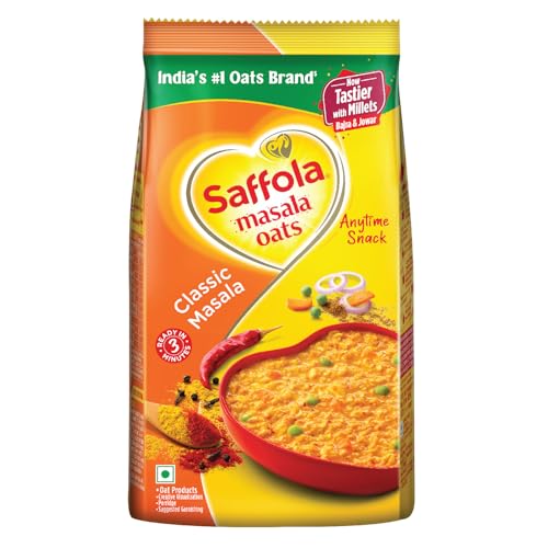 Saffola Masala Oats Classic Masala | Tasty, Anytime Snack | Ready in 3 mins | Millets Goodness- with Bajra & Jowar | No maida, No added preservatives | helps manage weight |750g