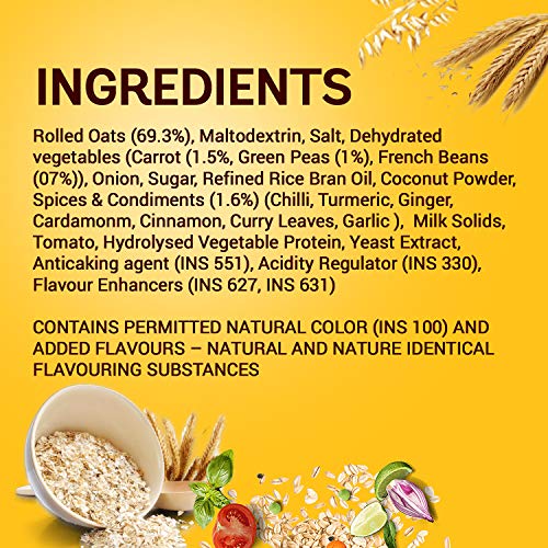 Made with wholegrain Oats & real vegetables Saffola Masala Oats is high in fibre and protein keeping you fuller for longer helping you control your hunger pangs and manage weight
