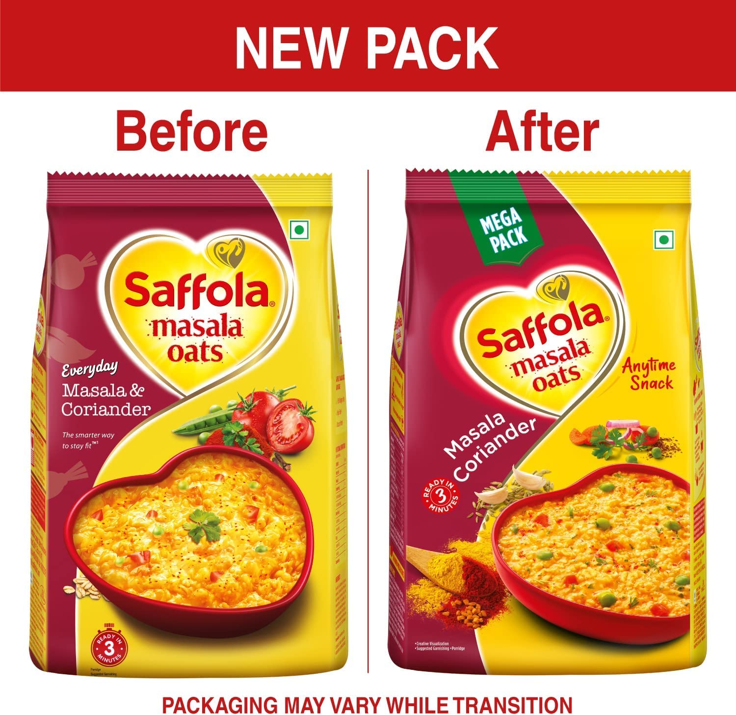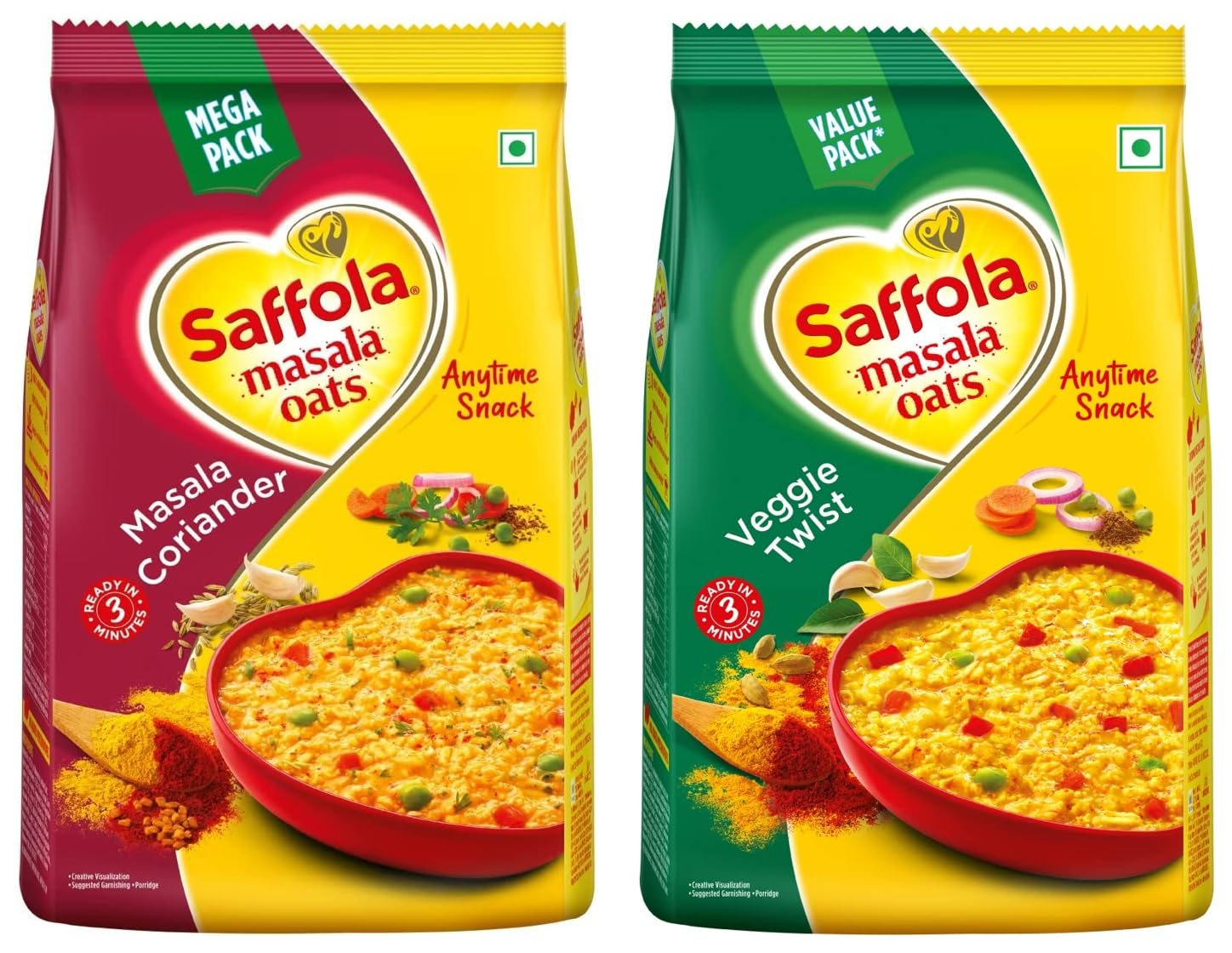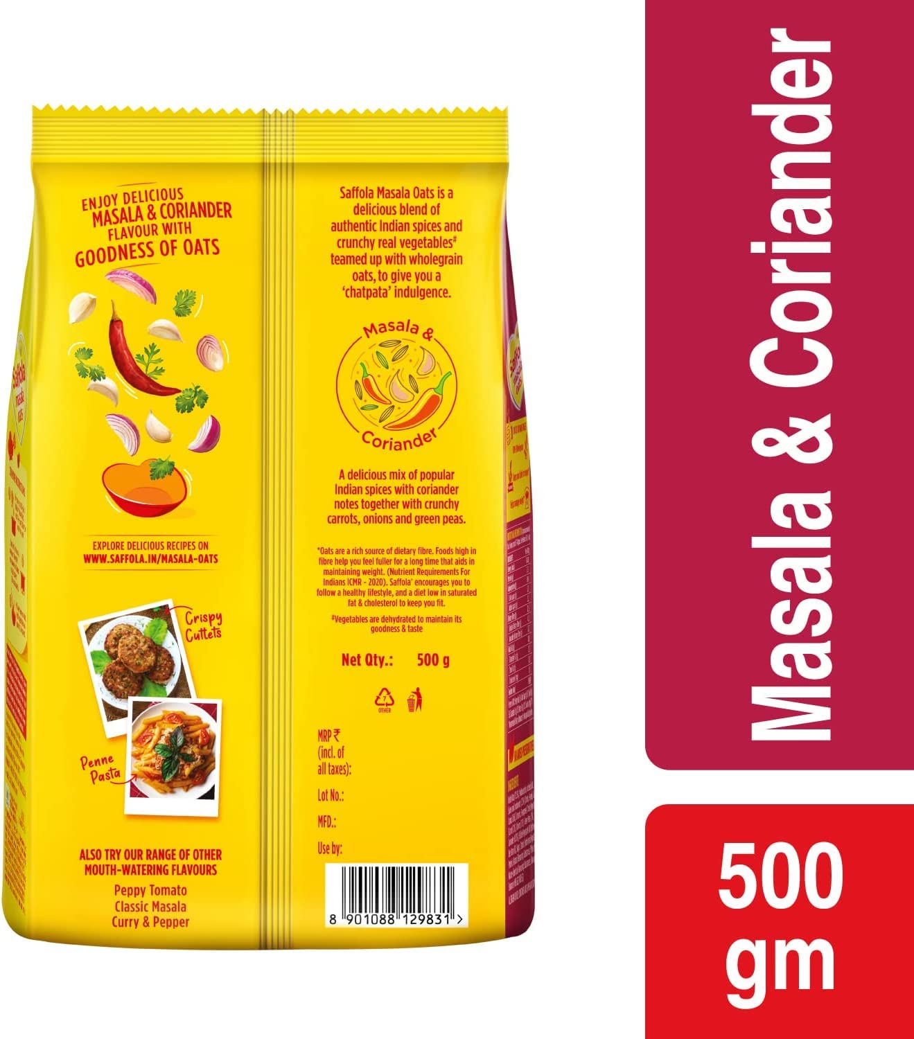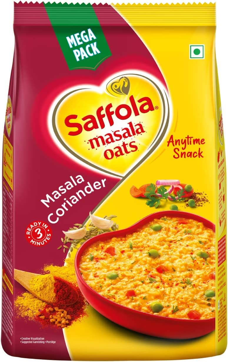 Saffola Masala Oats | Tasty Evening Snack| Healthy Snack| Veggie Twist| 1KgSaffola Masala Oats brings to you a range of delightful flavours making for a perfect evening snack. Made with wholegrain oats real vegetables & a tasty mix of authentic desi spices Saffola Masala Oats forms a delectable warm bowl of joy. What's more is that it is ready to eat in just 3 minutes - super convenient to make super tasty to eat and super hard to resist! You can also enjoy Saffola Masala Oats in a variety of tasty recipes like Crispy Cutlets Penne Pasta or just as a delicious bowl of joy with crunchy topping like namkeen peanuts or crushed papad. Saffola Masala Oats is available in a range of lip-smacking flavours - Classic Masala for the classic masaledar experience | Veggie Twist for the comforting blend of spices and vegetables | Peppy tomato for a tangy indulgence | Masala Coriander for the tasty mix of desi spices with coriander notes | Curry & Pepper with a lingering aroma of curry leaves. Made with wholegrain Oats & real vegetables Saffola Masala Oats is high in fibre and protein keeping you fuller for longer helping you control your hunger pangs and manage weight.Saffola Masala Oats | Tasty Evening Snack| Healthy Snack| Masala&Coriander| 500gSaffola Masala Oats brings to you a range of delightful flavours making for a perfect evening snack. Made with wholegrain oats real vegetables & a tasty mix of authentic desi spices Saffola Masala Oats forms a delectable warm bowl of joy. What's more is that it is ready to eat in just 3 minutes - super convenient to make super tasty to eat and super hard to resist! You can also enjoy Saffola Masala Oats in a variety of tasty recipes like Crispy Cutlets Penne Pasta or just as a delicious bowl of joy with crunchy topping like namkeen peanuts or crushed papad. Saffola Masala Oats is available in a range of lip-smacking flavours - Classic Masala for the classic masaledar experience | Veggie Twist for the comforting blend of spices and vegetables | Peppy tomato for a tangy indulgence | Masala Coriander for the tasty mix of desi spices with coriander notes | Curry & Pepper with a lingering aroma of curry leaves. Made with wholegrain Oats & real vegetables Saffola Masala Oats is high in fibre and protein keeping you fuller for longer helping you control your hunger pangs and manage
