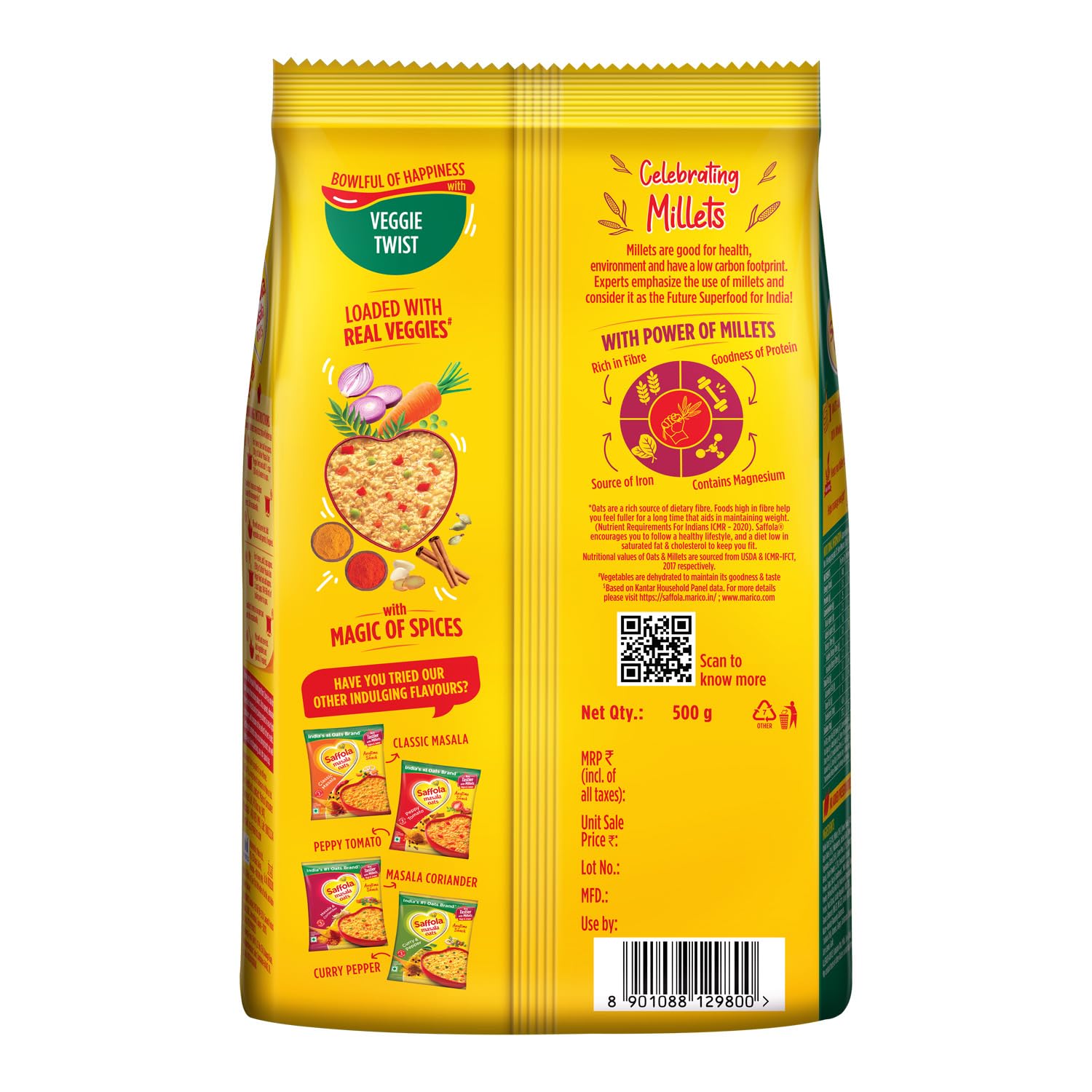 Saffola Masala Oats |Veggie Twist | Tasty Anytime Snack | Ready in 3 mins | Millets Goodness- with Bajra & Jowar | No maida No added preservatives | Oats helps manage weight |500g