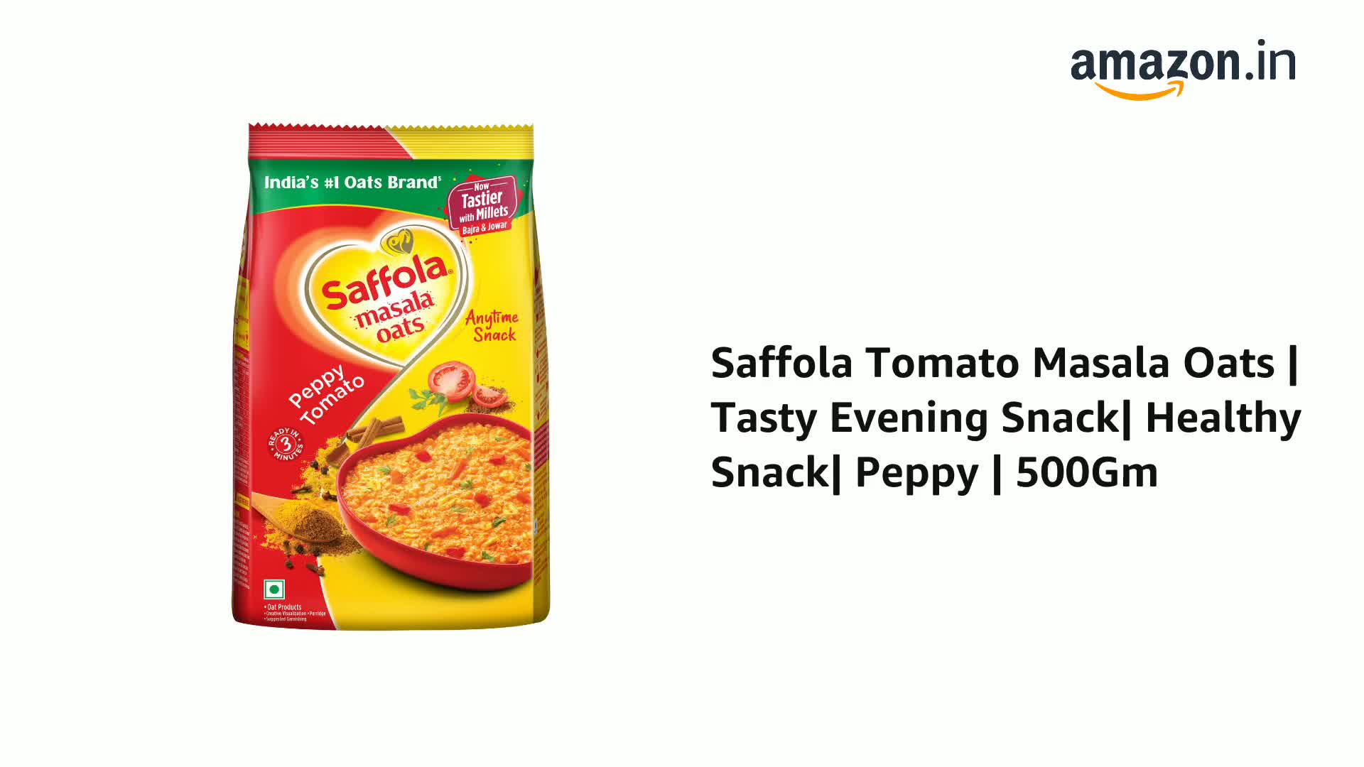 Saffola Masala Oats brings to you a range of delightful flavours making for a perfect evening snack. Made with wholegrain oats real vegetables & a tasty mix of authentic desi spices Saffola Masala Oats forms a delectable warm bowl of joy. What's more is that it is ready to eat in just 3 minutes - super convenient to make super tasty to eat and super hard to resist! You can also enjoy Saffola Masala Oats in a variety of tasty recipes like Crispy Cutlets Penne Pasta or just as a delicious bowl of joy with crunchy topping like namkeen peanuts or crushed papad. Saffola Masala Oats is available in a range of lip-smacking flavours - Classic Masala for the classic masaledar experience | Veggie Twist for the comforting blend of spices and vegetables | Peppy tomato for a tangy indulgence | Masala Coriander for the tasty mix of desi spices with coriander notes | Curry & Pepper with a lingering aroma of curry leaves. Made with wholegrain Oats & real vegetables Saffola Masala Oats is high in fibre and protein keeping you fuller for longer helping you control your hunger pangs and manage weight.