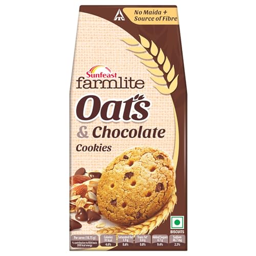 Farmlite Oats & Chocolate is a range of wholesome biscuits made from the grains sourced from the finest farm of India. Along with the goodness of grains it is packed with super healthy and tasty ingredients like wheat Chocolate that provide balanced nutrition along with a rich tasty experience. A perfect cookie for your everyday chai moments or those sudden hunger pangs