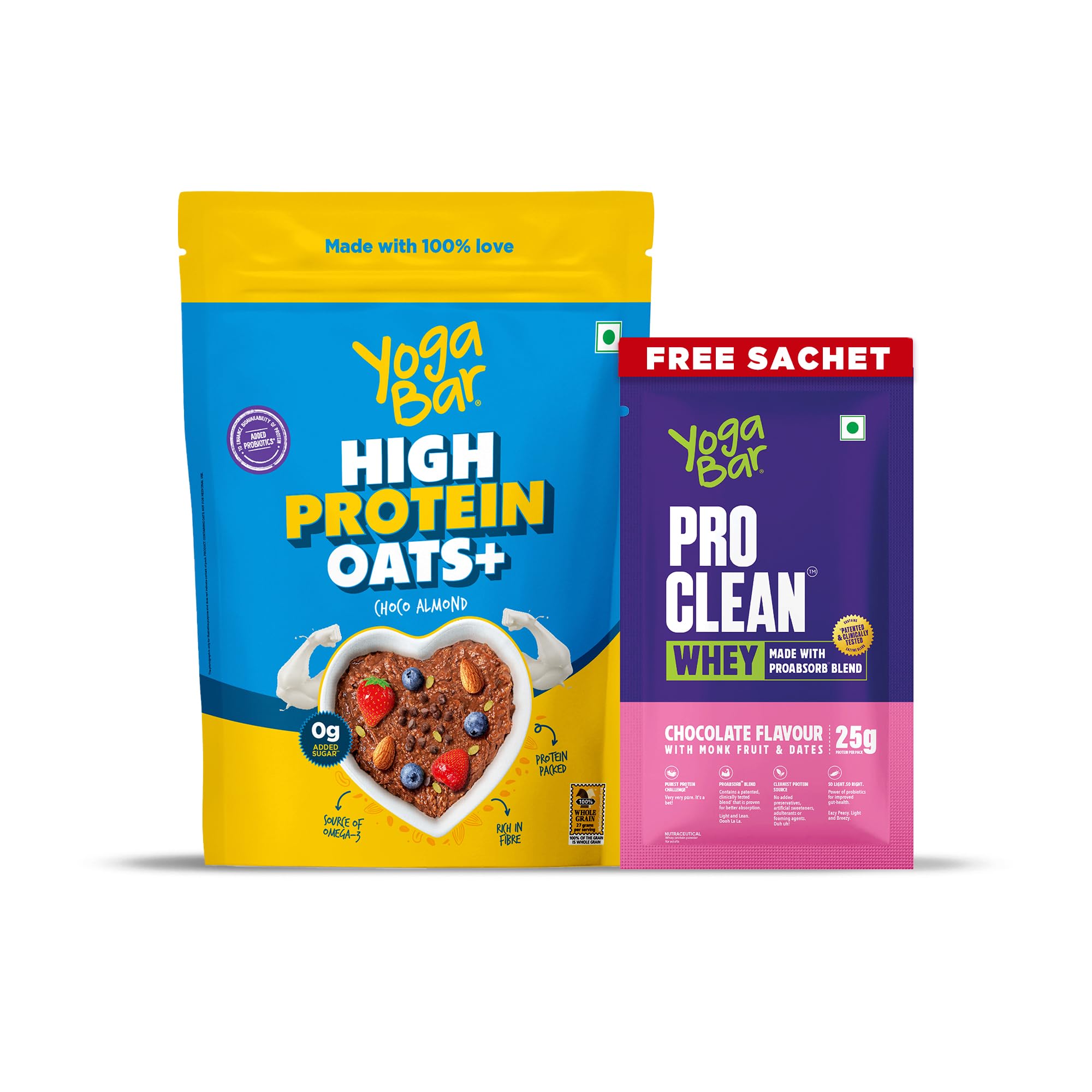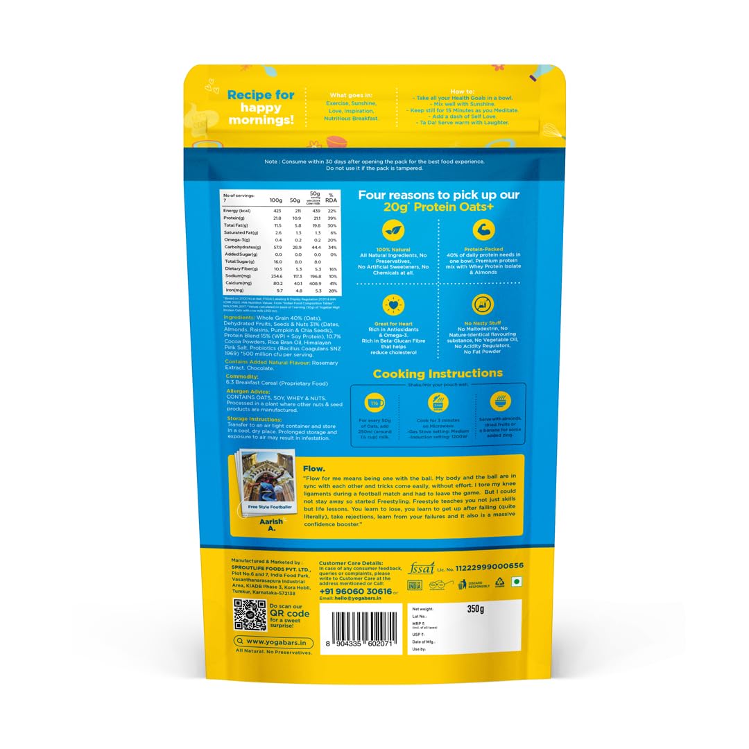 Elevate your breakfast game with this protein-packed oats that delivers a whopping 20g of protein per serving. The delightful combination of choco almond flavour enriched with real almonds strawberries and blueberries makes every bite a nutritious treat. Made with 100% natural ingredients these protein oats are perfect for fitness enthusiasts and health-conscious individuals looking to start their day right. The convenient pack comes with a special bonus - a complimentary Pro Clean Whey protein sample in chocolate flavour. Whether you're rushing to work or need a post-workout meal this protein-rich oats preparation offers both convenience and nutrition. The perfect blend of taste and health it's an ideal choice for anyone looking to maintain a balanced diet while satisfying their chocolate cravings. Simply prepare with hot water or milk for a wholesome breakfast that keeps you energised throughout the day.